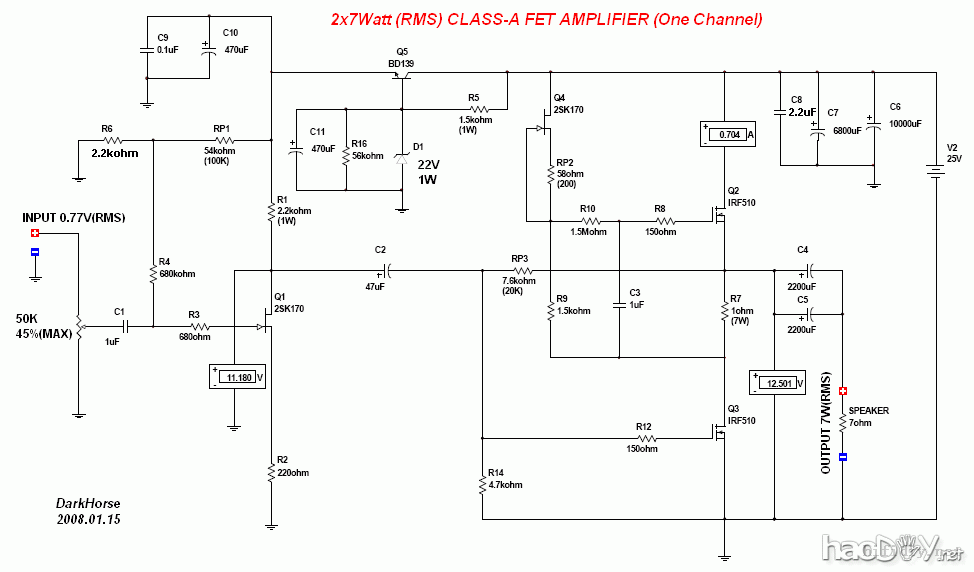 之前我设计的自倒相10W甲类的OCL版,用了小日本的K1056代替IRF510,声音马上得到了提升,很甜美,很性感!所以我做这台机唯一的失误就是没有将K1056或K133作为输出管,后来焊好了,也懒的拆换了...