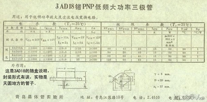 3AD18单管功耗13W,注意散热。