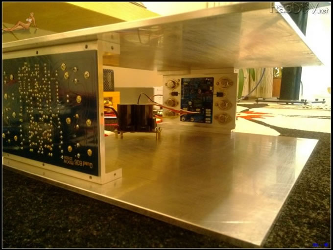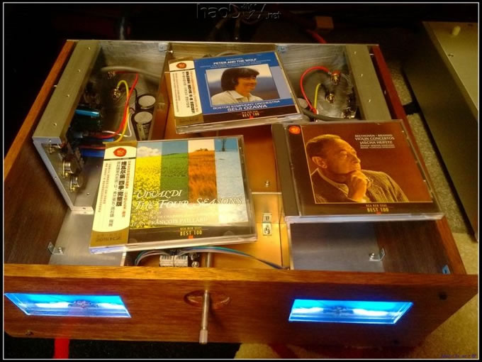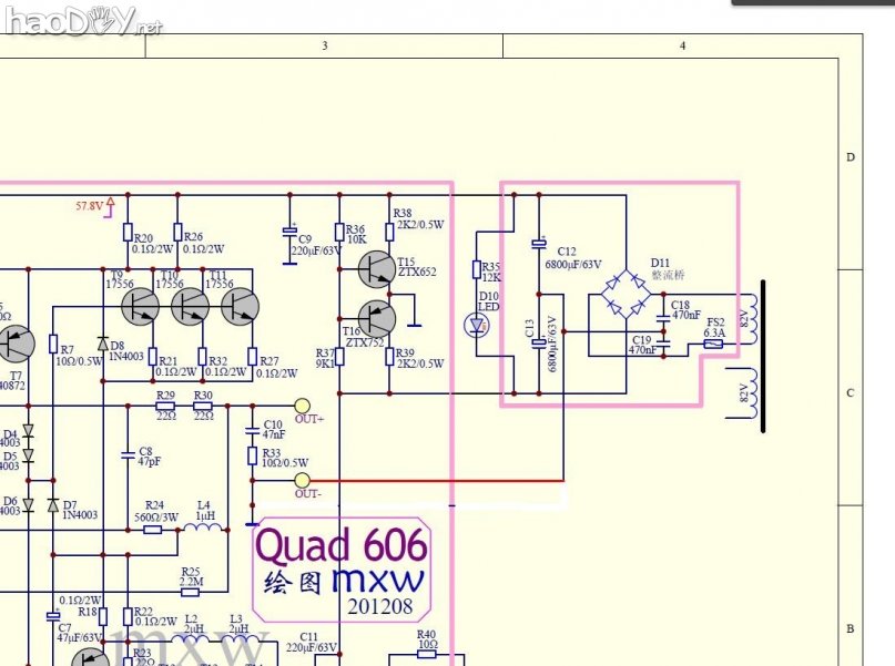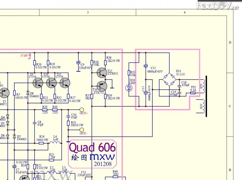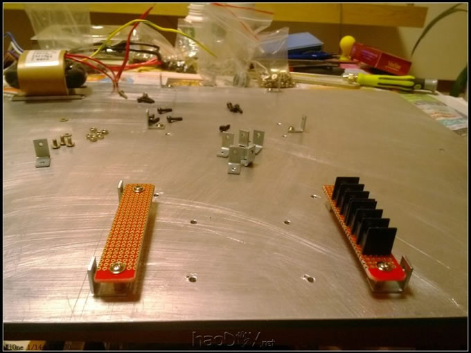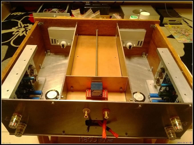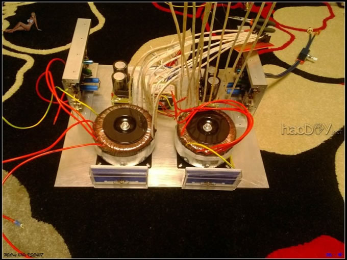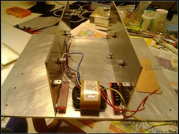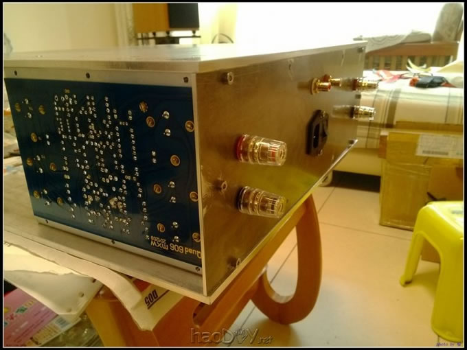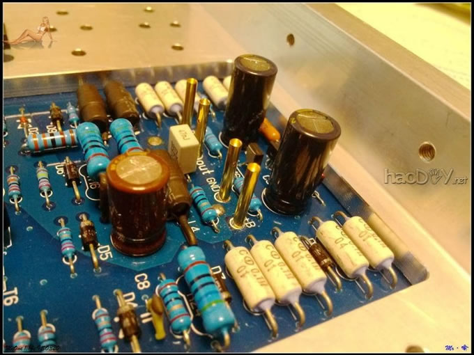先搞的电源板,搞了一部分之后,发现悲剧了。![]() 上一些图片,以免有人拍砖“无图无真相” 背面该加粗的地方就加粗,有几年没摸烙铁了,焊点看着有点不舒服。 ![]() ![]() 背面的焊点和加粗 ![]() 606的机箱,应该是3个大部分,其中有一部分是整体浇铸而成的。 个人不欣赏606原机机箱的外观,于是打算自己另想办法。初步打算用2块铝板(430*350*6)上下夹住散热器,后板用3毫米铝板,侧板及面板用实木,面板加表头。 由于有430的宽,散热比较宽敞。机箱中间用2块3毫米铝板把电源部分与放大部分电磁屏蔽开来,一切设想目前按部就班正常进行中。 顺手画的,还好某人能看懂。 ![]() ![]() 持续更新,昨天的工作结果: ![]() 电源部分,挣扎良久,最后还是妥协了。 ![]() 不过电源板的切割结果,一眼就能看出楼猪工具原始简陋的文科生本色。像狗啃缺的。。。。。。 ![]() ![]() 喜欢用红圈处的小工具,方便实用不伤手,实乃居家旅行,杀人放火之利器也。 ![]() ![]() 关于变压器的初级次级电压及绕组参数的问题,有几个朋友PM问原因,现在集中在此回复一下各位兄弟: 1、关于初级为什么定为0-230-235-240V的原因:搬了新家,市电长期在235-242V左右,所以变压器的基本初级就定在235V,另外的230和240,一、可以结合自己当地市电电压的一般值及功放需要的电压做小范围的调整(具体到我的情况请看下第2点说明),二、在力所能及的电压范围内保证电路最初的设计值; 2、这2个变压器次级电压定制的初衷,不仅仅是为了606,而且必须考虑还要能适用于小甲及通用型的甲乙类功放。思索良久,才得出这样一个奇怪的绕组数据。这样的话,通过不同的组合方式,能够方便的得到2组16-0-16(5A)、一组0-18(5A)/一组16-0-16(10A)、一组0-18(5A)/一组32-0-32(5A)、一组0-18(5A)/一组0-82(5A)这4种次级电压组合方式。不过这样的话,对变压器的绕制(特别是次级绕组)就有比较严格的要求了,而且还要增加一定的费用; 3、若对2中的4组次级绕组的电压还不满意,那么可以根据当地的市电电压,结合接不同的初级绕组抽头来提高或者降低次级电压(很小范围内的调整),比如自己觉得16-0-16不满意,略低了些,则把初级接0-230V抽头(市电为240),这样整流滤波出来的次级电压就会略高一些,不过这样能调整的范围很小很小,次级电压越低,可调整的范围就越小。 上述是这个奇怪次级绕组数据最终能出来的原因,没什么其他的玄机和奥妙(非XX洗衣粉植入广告)在内。 牛牛标称功率: ![]() 牛牛整体: ![]() 牛牛细节,直径: ![]() #p#分页标题#e# 牛牛整体: ![]() 牛牛细节,高度: ![]() 牛牛测试方法: ![]() 搞了一些质量还过得去的小东西 ![]() ![]() ![]() ![]() ![]() 这样一来,以后更换保险管也就比较方便了。 ![]() 还有一部分小东西、小玩意在路上拼命奔跑 另外寻觅了一款插针,好嘛,我承认,悲剧又来了,插针太大,孔太小。总么办?扩吧,别人都去紧缩,于是俺只好扩充。 手术过程就不上图了,血腥暴力,来个完成图。 焊接在板上的插针 #p#分页标题#e# ![]() 套上套套的插针 ![]() ![]() 其实,DIY就是痛并快乐着的过程,慢慢享受吧。5个小时,只做了几根线,这效率,简直弱爆了。BS自己一个,先。 ![]() ![]() ![]() ![]() ![]() ![]() ![]() ![]() 还是悲剧,总是悲剧,老眼昏花,把交流双9V串起来接进表头驱动板,直接烧爆滤波。还好发现及时,只有烟木有花,又总么办? 翻吧,领导下班回家:你娃娃又在搞啥子? 答:找感冒药。 问:今天真乖,俺俩心有灵犀呀,嫩咋晓得我感冒了? 答: ![]() 只好出去买3个9。 翻箱倒柜,还是有收获的,不过个头太大,将就着用吧。 ![]() 漂亮的表头啊,赞一个,啧啧啧。 ![]() 现场合影,电源带滤波测试,交流81.5进,直流112出,正极对浮地58V,浮地对负极54V,不晓得正确与否,懒得管了,收工觉觉。#p#分页标题#e# ![]() 不知道其他的606制作者们是怎么处理PCB板上GND点与电源地和喇叭地这二者关系的,一直没见着这方面的图片与文字描述。 左右思量,无法决断。迷茫间,元芳说:大人,这事得一分为二来看待。 我勒个去,正点!于是打算利用PCB板上的GND点一分为二,一个套套接2根线,一到电源地,一到喇叭地。 理想很丰满,现实很骨感。到这个时候,2毫米的套套太小,容纳不下一根1.5毫米和一根2毫米的线,各剥一半吧,前车之鉴,很可能从焊接处断裂。旁边就是电源,到时候可能不仅仅是烟花,应该还有音箱玩完。看来,元芳也不是万能的,总么办?这是个问题。 最后看到R33上面的这个坑,OK,有办法了,直接把这个坑打通,上针。看来当初这坑填得确实冤啊! 出错了。 ![]() 由于当初填了坑,打洞的时候一激动,没把坑里的焊锡去除干净,导致打洞位置严重漂移偏离,打断了挨着的近3毫米宽的PCB线。 ![]() 木事,补救吧。用刀小心轻刮。看来PCB质量真的没得说。 ![]() ![]() 来看看正面漂移的后果。 ![]() 这张稍微清晰点 ![]() 怪怪的,多了个东西。大不同啊。这下搞定,不用去考虑一分为二的烦恼,一身轻松,插针上两个,想插哪个插哪个。 ![]() 其实我不说,也许大家看不出来。本来就应该是5根针。 ![]() ![]() 这个开关,很难找,一直对船型开关有着近乎偏执狂般的爱好。 ![]() ![]() 来看看吧,通电,开机,蛮有成就感的说,正负电压各跌了4伏,其他好象差不多? ![]() 一股脑全部上来,各个方位摆拍,搔首弄姿。 ![]() ![]() ![]() 连线试听,GO ON 电位器,这个没办法,倭的。 ![]() ![]() 一些花絮 ![]() ![]() ![]() ![]() ![]() ![]() ![]() 喇叭端子 ![