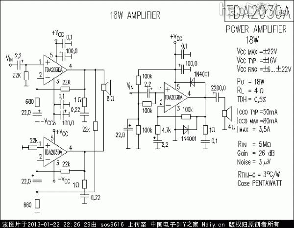 ![]() 9月份,花了半个月时间,研究功放,最后用2030做了一套BTL的功放。 功率单声道有32W左右。 ![]() 这是未装盒子前的 ![]() ![]() 后来做了个盒子, ![]() ![]() 盒子旁边的绿色是自己拿喷漆喷的,,,第一次做,,效果不好。 如果盒子是白色的,那喷起来是荧光绿的效果,可惜盒子是灰色的。 原理图就不发了,因为TDA2030的版本很多很多, 做个起来,放在家里用用也是不错的。 发烧点的,做个3886也是不错的,最近准备向3886进军了#p#分页标题#e# 单电源的话,你用7812可以试试。 我当初双电源用了分别用了两片7812和7912。 下面是电路图。。我用的就是左边的BTL。。希望对你有帮主