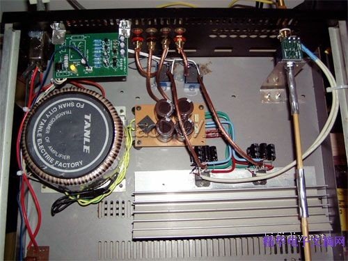 5。1期间无意中来到这个网站,看到这么多同类,放下6、7年的发烧DIY神经又给触动了,由于各种原因,这几年 一直没有好好动手,原来做的一大堆作品也都当做废品给处理了,我都以为已经没有这种兴趣去玩了,一 直到上个月,突然想到要做对音箱,经过一个礼拜的努力,终于完成了,并已经在这里给大家介绍过了。 由于感觉不错,就想到再做只功放,可以放在另一个房间用,废话不说了,下面来介绍。 一开始想法就是要做简单点的,因为我还是比较推崇简洁之上,当然,我也怕麻烦,因为真的没这么多时 间去做这些东西,后来在这里发现介绍LM3886和LM3875的片子比较多,反映也不错,就想办法搞到了几块 。 接下来就是线路板了,开始想到自己画板,到厂家去做(我公司要用到线路板,顺便做几块是没问题的) ,于是就想去网上找线路和板子参考一下,找了好多的网站,也有不少的现成板子可以买,价格都还行, 但总觉得不太如意,可能是心理作用吧,感觉多了一层铜箔(主要是通流面积太小)对大电流总有影响的 ,不过最终找到这里的板子实在是还不错,如果线路合适,我已经开始考虑买几块的问题了。 就在网上闲逛的时候,无意看到有个鬼子用LM3875做了台功放,除了电源,每声道才用了9个器件,偶突 然想到,这么少的器件,为什么不用搭棚焊呢,有了这个想法,我在这里发表了意见,得到了不少朋友的 支持。 接下来就好办了,按厂家的标准图纸,买齐了器件,基本都是在淘宝上淘的,电阻用的是美国军用1/4W, ALPS蓝壳电位器,接线柱都是在镇海买的,听说都是宁波本地产的,质量不错。喇叭保护电路直接用成品 板,偶将配套的继电器拆了,用两只合资产SLA继电器代替,这种继电器在28V时可达到30A,可以将对音 质的影响减少到最低。全桥和电解电容都是让我公司人员去进货时到宁波去带的,不要求什么名牌,只要 求正品,偶找了一块线路板,用美工刀刻了一块电源板,除了1mm左右的间隔,其他都是导电部分,保证 线路畅通。外壳、散热器和变压器都是将一只旧功放拆除后剩下的,变压器在整流后电压为±39V,正好 可以使用。另外淘了两只电源插口+滤波,一只在用,另一只备用。 器件齐了,大概花了我10天吧,接下来就是组装了,器件的位置偶早就开始想了,一开始想到把散热片竖 着放,把电源和功放部分可以隔开,但是,这样会使电源线加长,而且喇叭输出接线柱也不好放了,除非 另外打孔,天哪,我的外壳上孔已经够多了。于是,就把散热片横过来,就成了现在大家看到的样子,这#p#分页标题#e# 样应该是所有线路都是最短的了。 输入部分就是莲花座直接到电位器,无电容,消除了重复建设(偶们国家都走了好多弯路),并以最短的 距离接线,所以,大家看不到插座,给电位器线路板遮住了。本人选才从来都是不拘一格的,大家应该注 意到,电位器到旋钮的加长杆是用筷子+铝管做成的,铝管是厂里找到的,筷子嘛--嘿嘿......只要不影 响音质,又不影响操作,盖上盖子又看不到,呵呵,管他呢。 至于面板,偶正托人找铝板,薄点的,喷塑后贴到面板上,保证漂亮。 最后,有个教训给大家提醒一下,偶在焊好线路后,为了测试电源和喇叭保护时候正常,就未将电路的正 负电线焊到电源板上,在测试完毕电源已关掉的时候,不小心其中一个声道的正线碰了一下电源板负输出 ,我听到很轻微的“啪”一声,已感到不妙,马上将这个声道先连接好,不接喇叭,通电,三秒后,劈里 啪啦,电光四射,我的心一阵乱跳,LM3886辉煌的牺牲了。 我将另一个声道连接后,一切正常,只好将另一个声道重新建设了一下(深恶痛绝的重复建设啊),总算 大功告成了。经过这件事,我发现电源必须焊接电容放电电阻,虽然在测试时就发现电容实在厉害(共4 只1万微法),放电时能把电线焊住,但是不够重视,终于给教训了一下。 好了,介绍完毕,希望能给大家有所帮助,有什么不同意的,拍砖上来吧:) ![]() ![]() ![]() ![]() ![]() ![]() ![]() |