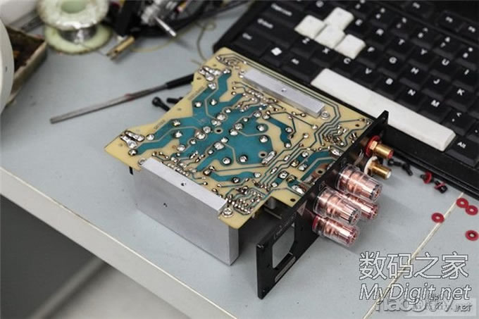整体通电,还好,没烟花。噪音控制的还可以,贴在喇叭上有一点点交流哼声,离开几厘米就听不到了。应该是牛挨得太近的缘故,可惜没有合适的牛罩。 ![]() 一般音量工作半小时,表面最热处的温度。(北京最近不是很热,室温大概26度) ![]() 接线。自制的线材。正式试音: ![]() 空间:15平书房,木地板+中间一块地毯,后背整墙书架,左侧厚落地窗帘。 音源:创新X-FI MUSIC 声卡(0460),win7 64bit 官方驱动 音箱:天朗S8LR,8寸同轴信号线:自制,佳耐美4芯屏蔽线 + 雅宝GY-3.5GB插头 + 雅宝RCA-007GB插头(2.5米) 喇叭线:自制,雅宝GY-180A + SC:03B-L香蕉头(1.8米X2)(另一对怪兽线 + 百威头)#p#分页标题#e# 电源线:电脑用普通3芯线 媒体:无损压缩音轨,FOOBAR 2000 + 终极解码2011 ![]() 没有选特定的试音曲目,电子贝多芬最后一轨,1812真实炮声版,老虎鱼的第一张专辑第7轨,还有很多爵士乐和流行乐。总的来说,就是7923的声音,高频解析还可以,中频很暖,这可能和号角单元也有关系,低频下潜不错,但力度不是很大,属于比较柔和的类型。 ![]() |