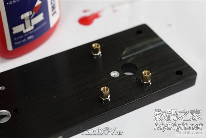 ![]() 原本的喇叭端子尾端的焊接用半圆口被我锯掉了,这才发现,原来所谓的纯铜端子其实是黄铜镀红铜。不知道正品CMC是不是也这样,不过,端子做工还不错,对得起价格。 ![]() 这是喇叭端子和PCB的连接片,画好形状,用剪刀剪0.5mm铜片做出来的。当然,剪完铜片会卷曲,用锤子敲平,然后用锉刀修下边口毛刺,最后还是扔进蚀刻液里搞成沙金的。 ![]() 最后焊接在PCB上,正极裸露较长的部分用热缩管做绝缘处理。 ![]() 下面开始试装机了!用模型上设计的空位出CAD图,然后打印,贴在机箱底板上钻孔。我是先用锤子+丝锥,在孔正中心点个坑。然后用2mm钻头打孔,在用2.5mm钻头扩孔。 ![]() 由于铝件比较软,拿手钻直接用2.5mm钻孔容易抖动造成孔径偏大,所以用M3丝锥攻丝。手工攻丝时,可以在孔内点一点点食用油帮助润滑。 ![]() 机箱底板是2mm厚,能买到的六角铜柱螺丝,最短也有5mm。而由于机箱内部高度问题,又不能加垫片垫高。所以套上个螺母,差不多2mm,然后把多余的锯掉。断口用锉打平,把螺母退出来的时候可以当临时板牙,给受损变形的螺纹做修复。最后再稍微修下毛刺即可。 ![]() 上PCB安装铜柱。多头组合改锥,这个东东我想喜欢折腾的都应该有一套吧~加了点螺纹紧固胶,防止拆装PCB时由于上面螺丝锁的太紧,松开时带动铜柱一起转。 ![]() 上好铜柱,机箱底部很平整,手摸很光滑 第二次试装,看PCB与铜柱、喇叭端子与连接片之间是否能对齐。 ![]() PCB有个别孔稍微有点偏差,用小圆锉稍微修一下解决。安装螺丝用M3内六角,垫了电木垫片。电木片比较有弹性,可以锁的比较紧。 ![]() ![]() 喇叭端子与连接片。上面两个正极端子用2mm的ABS塑料板做了两个垫片,这样上下两组的螺母就不在一个平面上了,方便在狭小的空间里把螺母上紧。 ![]() 这是第一版设计的电源开关电路。(有的朋友会问为什么搞这么复杂?其实我也想简单,可惜为了放下更大的牛,把开关的位置给占了)第一版用的是一个线圈为AC230V的继电器,想直接用小开关来控制。后来还特意发帖向论坛求助是否有问题,得到了大家的很多帮助。 ![]() ![]() 图左:给手动音源切换那一套用的,图右加了继电器控制开关,高压部分用高温胶带贴了一下。 面板安装孔。还是用设计图贴在上面,定位。钻孔时先钻个坑,然后把纸揭掉继续钻。面板是8mm厚,慢慢钻到6-7mm深,不能着急,一下钻透了就惨了。(如果有台钻就看刻度走,准确度高) ![]() 盲孔攻丝,最好用这种3只一套的。头头锥先攻出引导纹路,在用第三锥把最里面的螺纹攻出来。这样有效螺纹会更深。(一般不用二锥,直接用三锥。仔细看锥头的形状区别) ![]() 这回好,忘了买8mm铜柱,只好用螺母垫成7mm的,也还可以。上好紧固胶。 ![]() 另一套的面板。多开了一个按钮的孔,而且还得把开关卧进去,就钻成这样了。(孔内壁没法发黑处理,就用黑马克笔涂一下,虽然颜色有点区别,但也还可以) ![]() 齿轮箱装好,转动的手感还不错。 ![]() 前后面板的标识文字,在AI里进行设计。把面板上原来的丝印文字用稀料擦掉,然后进激光雕刻机雕刻画好的文件。 ![]() 面板雕刻。(激光雕刻只适用于有色铝氧化表面,雕完是黄白色氧化铝的颜色,不太适合银色铝本色面板雕刻) ![]() 自编码,包括之前做的一台,这是第二和第三台。(其实这块手忙脚乱中雕错面了。) ![]() ![]() 其中一套完成品。 ![]() 电位器延长杆没买现成的,因为一直觉得金属杆从牛旁边过会有感应。期间找了ABS棒,亚克力棒,都觉得它们在导热块后面穿过,烤时间长了容易变脆,而且两者的刚性差,转动会有扭动形变。最后找了根碳纤管,是鱼竿上的一节,刚性很好。然后请同事焊了两个黄铜连接件。 ![]() ![]() 零件基本齐全了,开始最后的装配。 通电开声。用了个20W,双AC12V的小牛做测试,接上炮灰音箱,音源是电脑。这时的保护电路未通电,手动闭合继电器。(先放上音乐,然后轻点一下开关,通电时间0.X秒,如果电路没问题,喇叭就应该直接出声了,电容的余电还能让它再响几秒)确认各元件无异常后,就可以延长通电时间了。用这个小牛带着听了半天,导热块只是有点温,低电压的发热相当小。此时中点为0mV和0.1mV,电位器关到底无噪音无嗡声,断开输入电位器开到头有一丁点丝丝的热噪。 ![]() 买这种继电器的好处就是带手动闭合开关。(主滤波的顶部离机箱盖只有3mm,而且新批次没绝缘帽,为了安全起见,用高温胶带贴了一下) ![]() 定制的四线AC26V+单AC16V的牛,150W。(功率偏小,但是这种机箱也放不下更大的牛了,除非分体)原带的线很长,果断剪短,然后压接插头。 ![]() 每根线分成两股,热缩管分别套好,这是为了增大过流能力,也算冗余设计吧。 ![]()