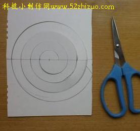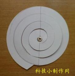 用铰剪沿着螺旋线剪开(下面的图比上面的图又多画了半个圆)。