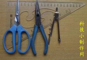 我用的硬纸板是台历的封皮,比内容页略厚,列位亲身下手做一下就知道,太软的纸板欠好。按扣在早年的衣服上应用挺多的,此刻好像少见了。 用到的器材: 直尺、铰剪、钳子、圆规;