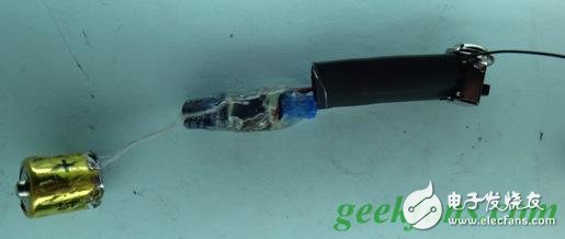 现在我们的电路已经完全可以用了,但是里面的元件在外面完全可以看得到,一点也不美观,所以,我们可以把中间的这个部分再用热缩管或电工胶布包装一下
