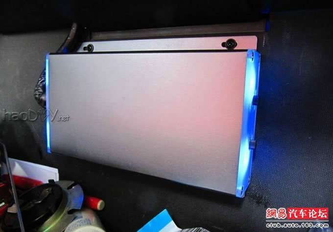 通电测机,四周4颗兰色磨砂LED氛围灯,成品侧面版是2块透光PVC片,炫?酷?看不懂了吧 那就等着看成品。