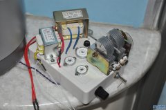 杀了一台废弃的飞跃R50-1收扩机,利用它的机箱和底台来改造成本机的底台和机箱,保留了原机电源部分的原件,加了一只WY3P作为调频部分的电源稳压,留用了原机的调谐机构,改造了刻度盘和增加了机内扬声器。