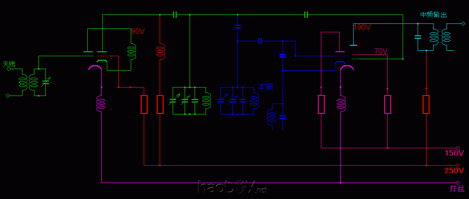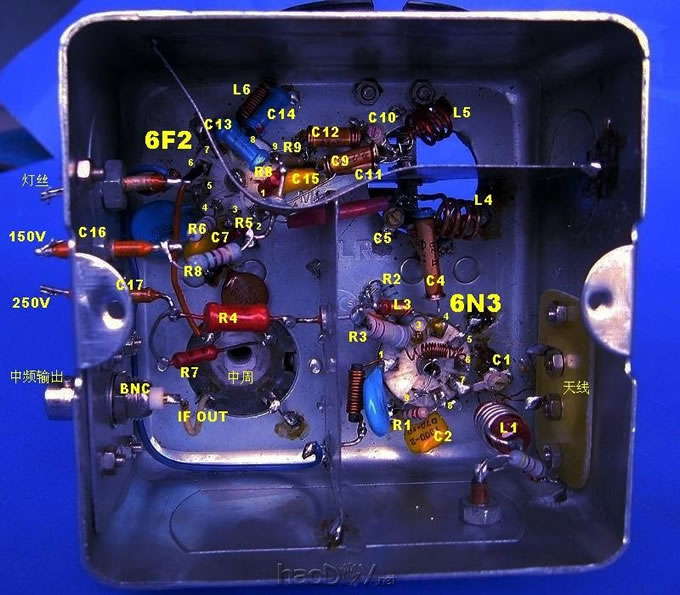 每天都要给儿子洗尿布,所以没多少时间精下心来玩了。最近终于抽时间做好了一个FM高频头,整顿了一下资料,发点图片大家批判批判。 这底盘用的是电线地插盒,表面镀铝,不易生锈。圆弧角,挺难看。而且不用打管座孔!哈哈!打几个螺丝孔就行了。 思考了好几天,想好了电路架构和元件的规划; 空连用复旦的3-19P小双连,高放管用6N3,变频用6F2,电容都是优质的外货精品;又想办法用白铁皮在底盘里面隔了3个独立的房间,供高放、本振、混频各自利用。 花了一个上午的时间,用铝合金角料做了个小双连的支架,累! 因为没有高频磁芯骨架,本振线圈和高放线圈最后还是抉择了用空心线圈。 说一下电路,高放用6N3组成一个串叠式缩小,本振是用6F2的三极管部分组成电容三点式振荡;混频是用6F2的五极管部分停止;没有设AFC电路。试机4小时,没显著跑台现象。 ![]() ![]() ![]() ![]() ![]() ![]() 电路图是手画的,大家凑合看看... 详细元件数据: 电感数据: L1:天线输入变压器,用2W大红炮电阻做骨架,次级用直径1MM的镀银线间绕4T,高级用0.5的漆包线在次级的间隙里面绕2T,核心抽头接地; L2:0.5漆包线在4MM骨架上绕12T,脱胎; L3:0.2漆包线在二分一瓦电阻上绕满,阻值47K以上; L4:高放线圈,用直径1.5的漆包线在7MM的骨架上间绕4T,脱胎; L5:本振线圈,用直径1.5的漆包线在7MM的骨架上间绕3T,脱胎; L6:扼流圈,在312中周的磁芯上用0.7的漆包线绕了10T。 电容数据: C1:5-20P,瓷介微调,电脑DIY制作,目标是调试不便; C2:1000P,云母; C3:1500P/250V,瓷管,两个电容,大些更好,不过必定要高频的; C4:82P/500V,瓷管,这个必定要留意耐压,最少要250V的; C5、C10:3-10P,瓷介微调; C6:6.8P,瓷管; C7、C8:4700P,低压瓷片; C9:2.2P,瓷管; C11:4.7P,瓷管; C12:43P,瓷管; C13:22P,瓷管; C14:10P,瓷管; C15:1000P,云母; C16、C17:4700P/250V,穿心电容。 电阻数据: R1:220欧,四分一瓦; R2:150K,一瓦; R3:220K,一瓦; R4:2欧,一瓦,这个可能根据实践电压调整; R5:1M,四分一瓦; R6:62K,二分一瓦; R7:22K,二分一瓦; R8:5.6K,二分一瓦,这三个电阻也要根据实践电压调整; R9:10K。 中频信号输出为了衔接不便,装置了一个BNC座。 也专门做了一个中放组件... ![]() ※※※※※※※※※※※※※※※※※※※※※※※※※※※※※※※※ 附:本站绘制的辅佐图片 ![]() 图1:电路原理图(点击图片,另外窗口关上大图...) ![]() 图2:元件标注图 ![]() |