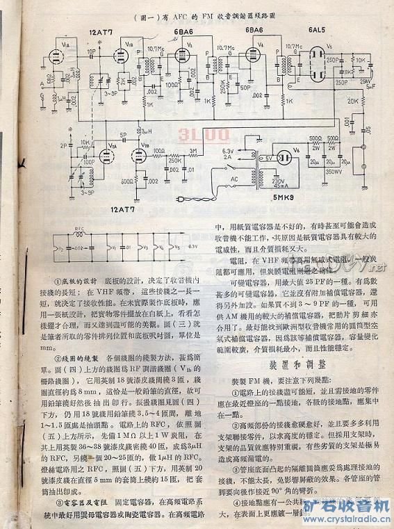 灵敏度比下面这个图安装的高很多呀,要做就用图二的装一台吧,接收性能大大的好。这台胆管收音头是在安装了图一的机器后发现图一的灵敏度不高,想着图二的高频头用了两个12AT7,高放电路以栅地阴极输入法可能比五极高放输入法好一点,所以用了图二电路安装一