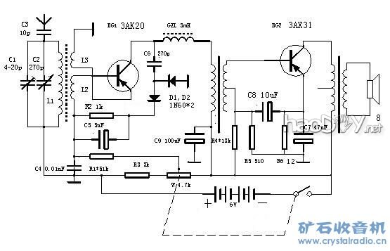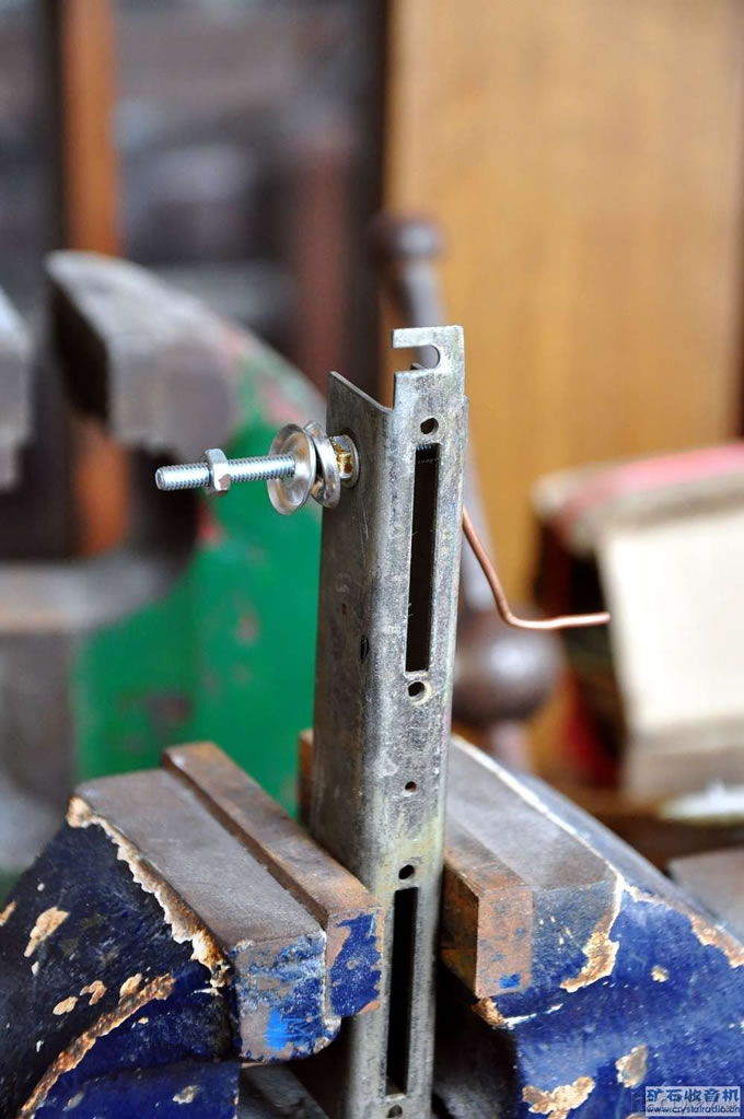 电路制作部分: 电路的程式很简单,一级来复再生检波,一级低放输出。电路是早期爱好者所乐用的简单电路,收听成绩也尚可,用少数的晶体管得到如此效果,乃是来复和再生电路的神效。 以前做过耳机输出的两管机,直观感觉就是音量比单管的大很多。这次是变压器交连,喇叭输出。本来预期能有可听的音量就满意,但这次试验下来的结果实在是出人意料,音量相当的宏大!试验过配合大喇叭,有蓬蓬声。 电路如图 ![]() 电路程式是一级来复再生,一级低频输出。电路照搬了昔日先生的图,在此表示严重感谢。在制作时改动了了以下几个地方 1, 晶体管改为3AK20(蓝)和3AX31(紫) 2, 输出管的发射极电阻用了12欧姆。原来的图上写了51欧姆,怀疑原图是否有笔误,因为俺看了好几个电路,都木有用到那么大的。 3, 检波和倍压二极管改用1N60 输入输出变压器是自行绕制的,绕制数字参考了海棠TR2-1型两管机。 输入变压器: 用5×7铁心 初级3000T,次级713T 用线相同。铜线是从一个小变压器里面倒出来的 直径未知 应该是0.08的 输出变压器: 用6×8铁心 初级用Φ0.15的线600T,次级Φ0.31线116T 铁心交叉插 浸透绝缘漆并烘干 输入变压器花了一些心思,毕竟两管机的增益珍贵,每1dB都不能浪费。原来用的是黄河741的输入变压器,变比较小 只有2:1,结果声音小。试图改变接线以形成3:1的时候 发现居然有初次级间短路,于是这个变压器只好拆除重绕。发现的过程是:当时试验的时候,电流表接在来复级,遂忽视了输出的3AX31。结果发现喇叭里面的声音很小 偶然触碰到3AX31的时候发现热的烫手!赶紧断电。不过幸而管子未坏。经过这件事以后,检测发现初次级间电阻较小 只有8K左右,这是导致输出管险些烧毁的原因。重绕的时候拆线发现,原来的付边是双线并绕的 因此发生短路的机会较大。因为绕线机的轴是Φ10的,于是就自制了一个极简易的绕线机,用了一根M4螺栓和两对平垫+螺母,还有一些别的材料就搞定了。不过绕完3000+713圈的过程费了不少劲,木有加速的绕线机果然不好用,在过程中断线4次,只好接起来重绕,不过最后测量,好歹是没有发生短路,庆幸。现在的变压器有4.207:1,用在电路上效果尚好。 用的简单绕线机 ![]() 底板借用了一块旧的,原来似乎是用于低放以及推挽输出部分的,我利用了上面的铆钉,并自己另外打了几个以适应这个电路的使用。附图是底板图 (责任编辑:admin) |