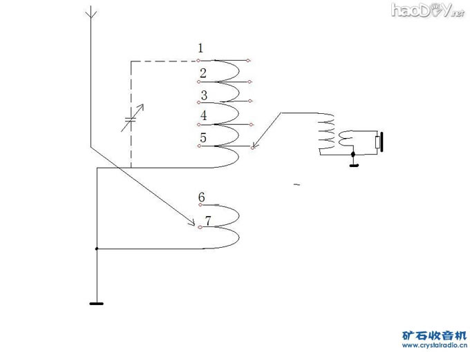 那个可变电容,是假想的,假如能自制成可变电容的话,天线以接入6、7脚为主,假如不能自制成可变电容的话以接入1-5脚为主。补充一下,图3中那个刀片,是家里找的废刀片,用来做检波器的