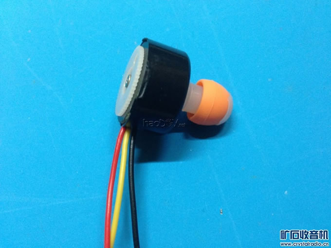 找来助听器耳机上的胶粒和胶管子. 用502 固字在压电蜂鸣器上便成了耳塞.
