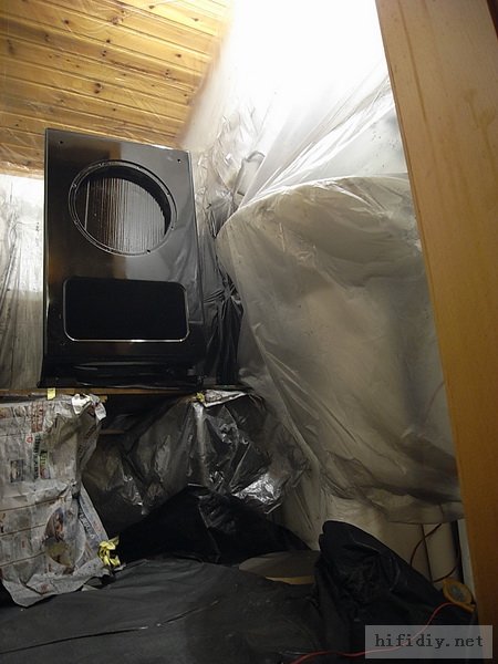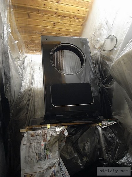 箱体制作相对还是比较简单的,最主要还是如何设计一个好声的箱体,对低音箱体来讲箱体的强度高很重要,但减弱箱体谐振和喇叭的共振也很有必要的,我的这个箱体共用掉了15公斤的沥青,现在的箱体敲上去像实心的一样,明显箱体的阻尼大了许多。