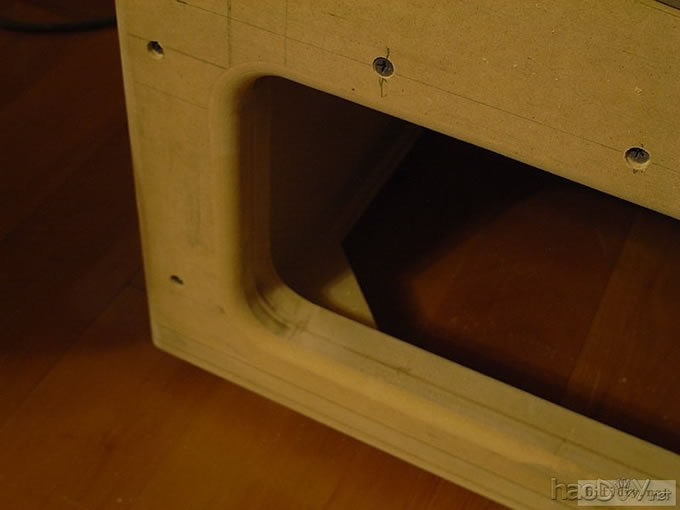 双12寸低音炮制作中,图纸是仿MK350箱体原理,密闭箱体部分容积59L。