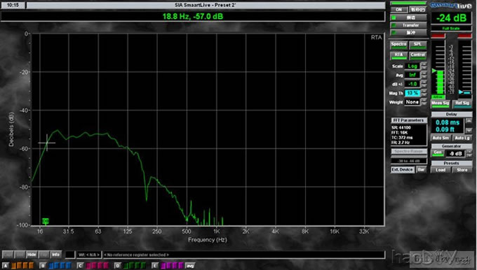 放了我的碟里的15—100HZ测试信号,从20HZ起在2米外能感觉到,25hz后基本都很明显了,80—100HZ声音大了多,后期查出问题后再慢慢调,最后不行的话就衰减掉点。