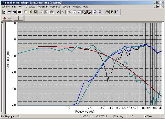 最近做了这一对小箱,当作多年没做箱的小练兵吧。前面板用夹板,其余用MDF+贴皮,不过上光油上的不好,gf说样子比我还丑,所以...献丑了,呵呵。接线还是全部鸡线,分频器用先进的纸板穿孔技术,大家不准笑偶~~ 来个内部照,高音是杂牌丝膜,低音是杂牌四寸涂纸盆, 分频全用无极电解,因为用mkp就要变成电容比单元贵了。都是多年没用的仓底货。 跟着说说设计过程。下面是高低音单元的实测阻抗和装箱后的单独频响图,用speakerworkshop测的。 上面是分频器的初步设计,因高音谐振约为1.6k, 初定分频点为3.8k. 因为高音比低音发声点靠前,所以设计低音的分频斜率比高音低,低音用二阶linkwitz-leily, 高音用三阶电分频/四阶声分频,上图分别为目标响应, 模拟高低音响应, 和反相位响应。因为高音用四阶,所以平常不用反接,反接时则会在分频点出现深谷,深谷则代表了高低音的同步性好。 下面的三条线是模拟的高音,低音和总频响图。上面的线是做好后的实测曲线,基本相差无几。 分频器的电路图。顺便一提,高音是6欧,低音是8欧。 完成后的左右声道阻抗图,可见分频元件和单元都有点离散性,但整体还可以。因为吸音棉一边放少了,造成Q值不一样,从谐振峰的高度可以看出来,还有待调整。开声的感觉是中高音不错,中频2.2k左右的小峰有一点冲,但幅度小问题不大。因为是四寸闭箱所以100hz以下基本没有了,准备和低音炮合用于电脑。 (责任编辑:admin) |