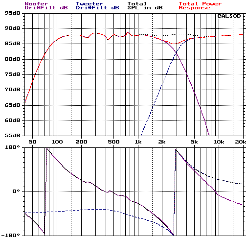 Esquire是小型两路扬声器,采用单元为Vifa的 P13WH-00-08中低音单元和Vifa的 D27TG-45-06软球顶高音单元。外型见图1。 图1 外观 制作这扬声器的是想通过有限的投资获得高质量的回报,而且作者也不需要低于80HZ的低频,预算大概是140美金/对。 单元选择: 作者认为设计扬声器最重要的也是最开始的步骤就是选好单元,如果设计师能成功地选择好单元,以后的工作就变得简单,比用不那么好的单元企图通过设计分频器来修正的工作要轻松的多。 考虑了众多优秀的单元后,我选择了Vifa的5.25英寸的P13WH-00-08中低音单元,经过我的试听我认为它是世界上最好的5.25英寸单元之一,尤其考虑到它的性能价格比,也作为许多设计师的推荐产品,而且出现在许多非常高档非常昂贵的扬声器中。 我同时选择了其搭配Vifa的 D27TG-45-06软球顶高音单元,其规格性能与P13WH单元非常匹配,该单元也采用了目前许多优秀单元(价格要昂贵得多)所采用的工艺和制作方法,提供了平滑的响应和宽广的频率延伸。其中有些价格高达1500美金的扬声器也采用它。 箱体按倒相箱设计,箱体的尺寸和开口尺寸是基于单元的Thiele/Small参数的,可以用Perfect Box或者 CALSOD软件进行尺寸的优化,但VIFA提供的实际单元参数可能会跟厂方公布的不一样,因此我下面的箱体尺寸不一定适合你买的单元的最佳值,我测量参数后进行箱体设计的值跟厂家推荐的值有一点偏差,而且考虑到单元、吸音材料的体积等增加了10%的余量,同时也考虑到分频器元件电阻对喇叭Q值的影响。 开口尺寸是用公式进行的,但最终的长度还是由试听和测试设备来确定。 厂家推荐值是:体积5L,倒相孔直径1英寸长度1。5英寸,调谐频率74 Hz, F3为 80 Hz响应QB3。 作者设计值是:体积5。3L,倒相孔直径1。25英寸长度1。625英寸,调谐频率75 Hz, F3为 75 Hz响应SC4(瞬态比QB3要好) 制作箱体 我设计的原意是使用PVC管放在矩形箱体里,中间填充沙或铅粒,但这样体积太大了,因此材料最终使用0.625英寸MDF板(废料),因为面板的宽度比厚度要小,箱体里面还使用了不平行的支撑挡板用来加固和防止驻波的产生用手指来敲都没有一般扬声器的"砰砰"声,所以箱体是十分坚固的。 前障板约有5度的后倾斜,两单元的边距离为3/8英寸,使两单元的声中心能尽量对齐,这样的方法诚然并不十分准确,因为很难通过视觉来测定两单元的声中心。但我用CALSOD模拟的时候,发现单元声中心的一点点移动就会引分频点的频响有比较大的下陷,因此我尽量用上述办法去改善这问题。 前障板的边缘没有采取什么措施来防止衍射问题,但影响比较小。 箱体外层是巴西的一种红木皮,整个箱体的外观可参考图1。 箱体尺寸: 宽7.50 英寸、高 11.25 英寸、上部深度5.875 英寸、下部深度为6.875英寸,因而前障板的倾斜角度约为5度。(转换尺寸比率为1英寸=25.4mm) 分频器的设计 分频器元件值不按照书本的公式----因为那是针对理想单元来说的,作者使用 CALSOD 软件来优化,而且在试听后进行了改进。因为所用的单元本身的频响非常平直,其他如滚降特性、对分割振动的控制、离轴响应都非常好,因此分频器设计工作比较简单,虽然最终的线路比较复杂,但我的感觉证明它是比较恰当的。 我也设计了很多不同类型(贝塞尔、巴托沃斯、切比雪夫)和不同阶数(1、2、3、4阶)的分频器来进行试验,但最后我发现使用四阶Linkwitz-Riley、分频点在3K的滤波器看起来最好,更重要的是听起来最好。 虽然高音单元的低端延伸非常好,能使用较低的分频点和滚降特性,但我发觉这样的做法并不全面,不能很好的兼顾中频和极高频,太大功率的信号进入高音同时带来一定的失真,虽然4阶的高通设计看起来有点保守,但聆听指出这是让高音单元工作在最佳状态的办法。 幸运的是,低音单元在3K的30度离轴响应非常好仅降低1dB,因此使用3K的分频点没有问题。 图2显示了计算机模拟的状态,可以看到高、低频单元在分频点附近的滚降特性都十分接近完美的Linkwitz-Riley理论滚降特性,单元反接后在3K出现了-25dB的深谷。 图2 计算机模拟的分频器特性 因为两单元的离轴响应都非常好,而且Linkwitz-Riley滤波器的指向性能很好,因此能提高精确的音像。使用4阶Linkwitz-Riley滤波器的代价是在相位和瞬时方面做了折衷,对于一些固执的听者来说是不大满意的。但我自己对相位的敏感性要比其他方面要低。如果大家不满意的话可以自己对设计进行修改。 图3是分频器电路图,在高音回路我使用的是薄膜电容,低音回路使用的是无极电解,元件值偏差最好在1%。虽然可以使用更高级的元件,但往往投资与效果不成正比,随个人的条件和爱好自由选择。电感的直流电阻已经在图中表示,如果数值有变化会带来一定的影响,需要制作人精心的调整才能达到最佳。 图3 分频器 听音效果就不多说了,是十分主观的东西,作者认为它的声音是非常清晰透明的,没有谐振与染色,没有强调那一部分的频率,声像定位非常好,适合播放多种类型的音乐。高音没有刺耳、粗糙感,听不出分频点的存在,中频十分完美,但正如低音单元的尺寸所限制的,最低频是无法再生的,但主观给人的感觉是低频非常有劲,令人满足。 如果使用超低音与它匹配的话,会进一步改善其中频,作者正在实验用 NHT 的1259 单元(12 英寸)。 (责任编辑:admin) |