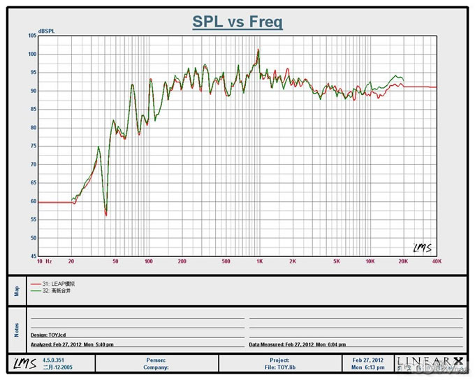 ![]() 经过一段时间查资料,先用3D软件把TOY的箱体画出来(效果图附图1)希望尽量贴近原箱。3D图出来后再转为2D,出图后出图找音箱厂的朋友帮忙打样。经过一个多星期的等待,终于收到朋友的快件,于是迫不经待的开箱检查自己的成果(附图2)。 ![]() Solidworks模拟出来的效果图 箱体屁股图,倒相管和原厂的还是有点不太一样,得继续找.金属牌没做好. ![]() ![]() 箱体出来的效果,自己感觉还过得去,不过侧板喷漆已经是封木眼的,个人不是很喜欢,我比较喜欢木皮露木眼的,因为这样感觉木纹的质感好很多,看来下次再叫他改进.还有一些金属的配件已经找五金厂做样了,回来到时再装上去,装上后估计效果会更好些 箱体回来有有一段时间了,一直没有时间装箱调试.今天趁有点空闲,把喇叭装箱子里测试了下(低音和高音直通频响图). ![]() 是在房间里测的,低频受房间的驻波影响有峰谷,只可以参考,低频在70HZ应该是没有问题的.低音喇叭的频响滚降很漂亮,几乎不用分频器都可以用了.二个喇叭重叠的频响比较多,分频器应该比较好做.查资料说原箱的分频点是4.5K 最近学习LEAP的模拟,所以先用LEAP模拟了这个箱的分频器 ![]() 分频线路图,高低音都采用2阶. ![]() 模拟出来的频响,我做的分频点在4K左右 ![]() 实际测试的频响 ![]() 测试与模拟的频响对比.结果基本是一致的,出入还是有一点,看来LEAP还得要加强学习 ![]() 电压特性,没有大的起伏 ![]() 阻抗 兄弟们可真快呀! ![]() 另外手头上刚好有对所谓的世霸原装的高音,于是我VIFA的那对测试对比了下,个人觉得应该是一样的东西,只不过包装得有点不一样而已,所以不要迷信什么原装进口改良版什么的,都是一个厂出的东西.当然有原厂情结那又是另当别论了.呵呵~ ![]() 放得太久,没搞卫生. ![]() 频响都是很漂亮的,可以到40K.VIFA的XT25子弹头是我比较喜欢的高音之一,首先性价比高,声音比较柔,润.质感稍差 ![]() 我的表达能力有限,当年学生时代最怕的就是写作文了,一拿起笔就头痛,老是想不明白学语文有什么用?!现在明白了~呵呵!按惯例还得简单说一下自己的听音感觉吧,首先我感觉比较大的是声音的密度非常好,虽然喇叭只有4.5寸,但声音还是比较有规模感,音色比较温暖,柔和.听人声很不错的.低频听一些小编制的音乐和人声是它的长处,不过这个箱子在小点的听音环境比较好玩一些,我想这也是世霸给它取名"TOY"小玩具的原因吧.前二天还专程跑到广州听了这个小箱子. ![]() ![]() ![]() |