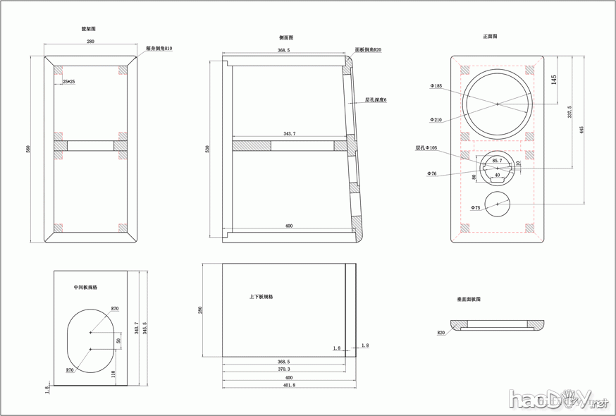 自己CAD测绘的箱体 当时我没有用脚架,为了不影响工作,音箱靠墙放置的.确实听不到多少低音.然而靠到墙边低音又出来了. 现在我临时加高了音箱,也调整了音响摆放位置,背离墙面1.5米,左右距离前面0.5.问题得到解决.狂喜.等待脚架完工 ![]() (责任编辑:admin) |