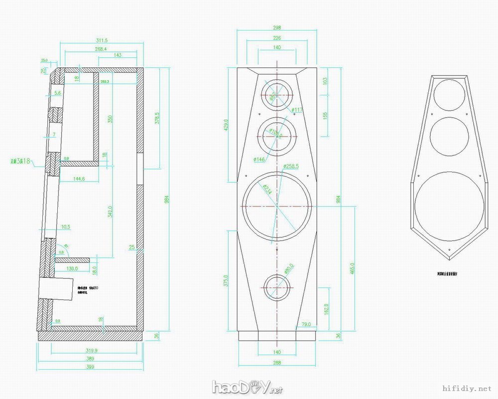 全部奥松板!高109MM!宽35MM!深51MM!前面板3个18MM其它都2个18MM!里面加固也都是2个18MM厚!大家看怎么样?喇叭C90和12-680和7000!喇叭开孔高音105MM-72MM-6MM!中音174MM-148MM-7MM!低音332MM-293MM-9MM!