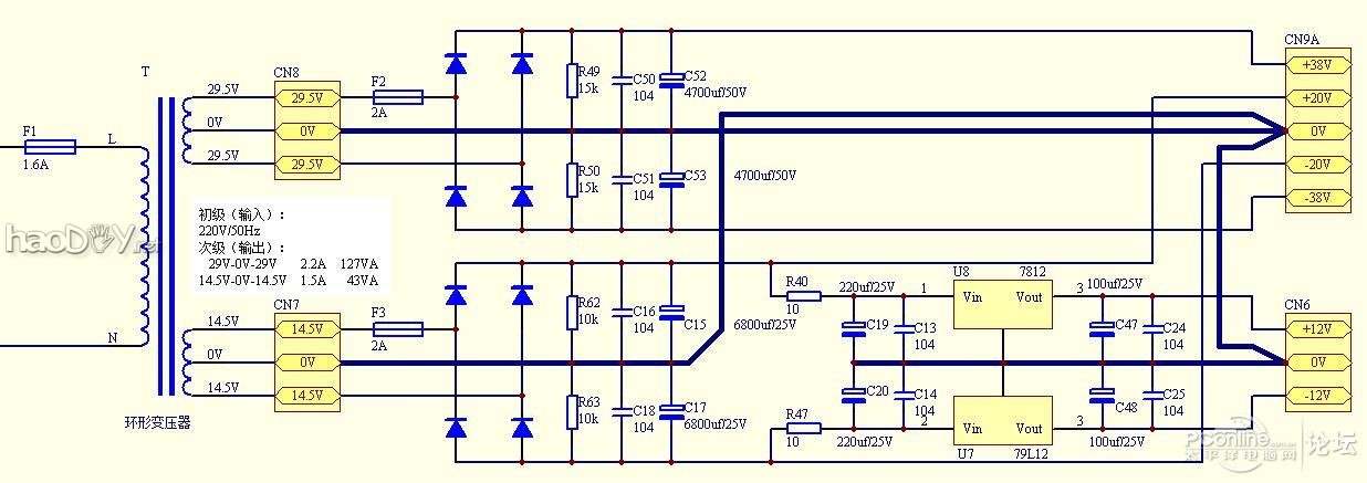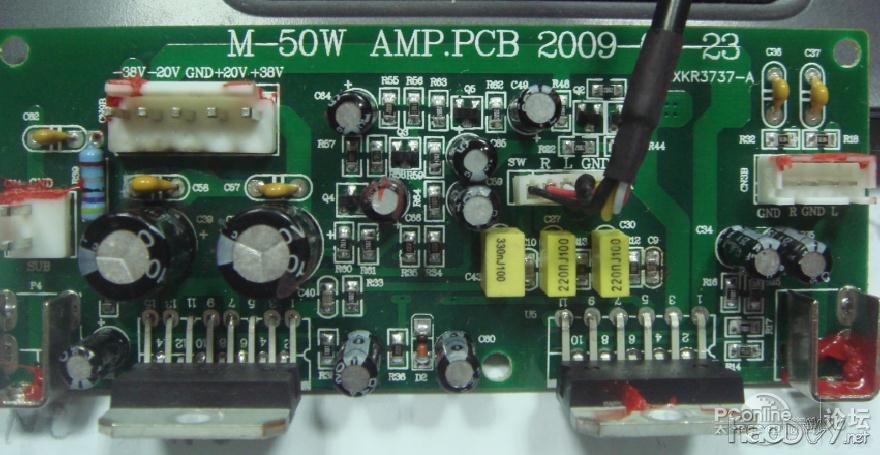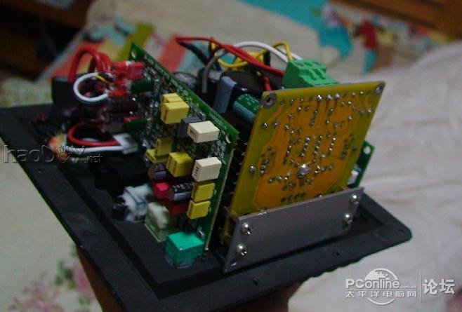 M50W是惠威推出的一款号称顶级2.1桌面多媒体音响的拳头产品,当时准备入手时,纠结在2个音箱的选择上:M50W还是M200MK3。选择惠威是必然的,因为早就是国内音响界的龙头老大了!经过反复分析,感觉自己还是习惯在听音乐时加上Super Bass,以及调高高频段,说明低音对我来说是必须的!没有低音的音乐是不能接受的!因此,我毅然决定:入手M50W!...... 购物渠道自然是淘宝!我选择了最近的惠威专卖店,1150元包邮价!比纠结当初已经涨价了!唉,涨了将近200元!不能等待了! 宝贝到家,立马试听!果然是不同凡响!特别是低音很震撼,不过感觉中高音没有达到期望效果,听歌时,齿音不清晰,怎么回事情?另外,竟然还感觉喇叭有交流声!虽然可以容忍,不过总是感觉不爽,我就准备打开箱子,看看里面的究竟了...... 因为职业关系,家里的新添家电,总是会被我解剖分析,呵呵,这下,轮到M50W了,大家等着吧,我会把过程,以及电路分析都会奉献出来的...... ![]() 关于M50W的介绍我就不啰嗦了,网上大把的。官方图片也很多,大家自己去看看。 首先,捧起低音炮,感觉对得起这个价格:),非常的沉!那个钢琴漆,也是非常棒,没的说!接下来准备好拆解工具:一个小螺丝刀,一字型的,一字宽度是3mm的那种,并且不能是质量差的那种 ![]() 拧下后面散热板上的12颗螺丝,然后拿住散热片往外拔整个散热器。注意,惠威的做功真的不错!密封很好,以至于可能会纹丝不动!不要紧,用螺丝刀在4个角的其中一个,轻轻的挖一下,一般就会有所松动。千万不要蛮干!打开后,就可以看见里面电路板的全貌啦!不过要小心拉出,因为里面有很多连线呢,按下接插件侧面的钩子,一一拔出低音喇叭线、蓝色的卫星音箱电源线、橙色的低音炮功放电源线,再拔下电源开关上的2根线(有尼龙扎带捆着,把扎带剪断)。到此为止,就可以把低音炮里面的电路板拿出来啦!哈哈哈哈 拿下电路板做啥呢?我是要进行测绘啦!分别拆下信号板、电源板、功放板,谁说M50W的密封不好?简直就是胡说!人家在接插件、电源开关等等有可能发生漏气的地方都上了胶呢!并且在信号板与底板(散热板)之间还贴有一层类似橡胶板一样的东西,彻底杜绝漏气!看来惠威做事还是挺用心的。先看看电路板吧,信号板: ![]() 电源板:(拆掉了4个电容器) ![]() 功放板: ![]() 接下来是测绘的电路图: 信号板 ![]() 从信号输入部分看,输入阻抗应该是25千欧,不知道惠威声称输入阻抗是47千欧是怎么算来的? 另外,因为使用了M62429这个芯片,受到输入信号电平的限制(最大输入电压1.7V),M50W把输入信号衰减了10/25!后面我们将看到,为了达到额定功率的输出,卫星音箱的功放增益竟然设置为45倍!这就降低了卫星音箱的信噪比,大家总是埋怨M50W的底噪大,很大一部分就是增益过大造成的! ![]() ![]() ![]() 完整信号板电路图: ![]() 再看看功放部分的电路: ![]() 图中ST-BY端子是增加功放板的待机功能而增加的,来自线控音量控制器,这样改造后,按下线控音量按钮后,功放就进入待机模式,功放芯片处于待机模式,消耗更小的电流,有效的降低了静音状态下的发热程度!当然,音量线控里面也要适当修改呢 另外,这个板子上TDA7294的静音控制电路存在不足:#p#分页标题#e# 根据官方电路,TDA7294的待机和静音控制端的控制电压有时序要求(请看官方文件) ![]() ![]() 根据官方数据,静音控制脚(10#引脚)相比待机控制脚(9#引脚),要求充电时间慢,放电时间要快。好像惠威的设计人员没有理解这个问题,似乎犯了这个小错误:把R35的阻值取值为10K,这样10#引脚的放电时间是一样的,可能会违反官方设计意图。个人认为,这个电阻的取值应该为5K左右比较合适,符合时序要求。 接下来,再看看电源板吧! 当然,电源是最为简单的了,不过却扮演着非常重要的角色,因此不能不贴图: ![]() 就剩下音量线控器的图没有测绘了。。。。。。如果需要,会补上的 大家应该发现,M50W的很多用户都在抱怨这个音箱存在比较明显的交流声!的确!我也是清楚的感受到了! 不过对于电子工程师的我,解决这个问题应该是小菜一碟!分析下电源板的PCB,不难发现,惠威的设计同样存在问题。 看图: ![]() 这个PCB的接地系统比较紊乱,没有遵循一点接地的原则。特别是:+12V的输出滤波电容器和旁路电容器的接地,竟然接在了距离接地输出点较远的地方,而且被低音炮电源回路的4700uf电容器的充放电回路所包围!另外,接地回路没有采取降低阻抗的措施,这些就是卫星音箱交流声的罪魁祸首!并且,在大音量的情况下,整流回路的充放电电流会更大,信号板的电源纹波将会更大,交流声会更加明显,不过会被更大音量覆盖而已。 ![]() 还有一点疑点:低音炮的输出功率明显大于卫星音箱,不过为什么低音炮的功放电源滤波电容容量(4700uf*2)反而小于卫星音箱的功放电源滤波电容容量(6800uf*2)? 接下来,就开始动手打磨啦! 首先从电源开刀! 前面说过,打磨电源是提高音质最容易见效的手段之一,并且不知何故,M50W的低音炮功放电源的滤波电容容量感觉不足,原机为4700uf/50V一对,考虑到尽量不要改变原机结构,选用6800uf/50V的红宝石电解电容器,该款电容器尺寸为直径22mm,身高50mm,直径一样,高度比原机的4700uf电容器高出10mm ![]() 前面说过,电源板的接地线截面不够,走向也不合理,不过几乎无法更改,只能将就了。但是截面可以增加(焊接铜线),并且拆去信号板电源的输出滤波电容器和旁路电容器 ![]()