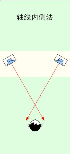 摆法:首先将音箱摆在房间的三分之一至二分之一长度之间,然後分别将音箱尽量靠侧墙,如果房间太宽的话则不一定要紧靠侧墙。音箱的向内角度要大于45度以上,聆听位置要在两个音箱的投射角交叉线交点之后约0.5-1公尺之间。