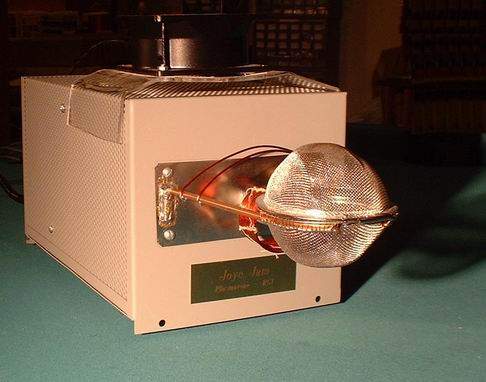 先上一张老照片,大家可以看到一个高音号筒及底下的盒子,盒子上头还装有一支真空管------整个系统便是一个高音单元,盒子中的是驱动线路,根本没有使用传统喇叭中的振膜结构,而使靠直接使空气等离子化来发声,频响范围覆盖高音的可听带域,上限可达250KHz! 照片为1951年一位叫做Siegfried Klein的在巴黎推出的等离子高音单元的产品,命名为“Ionophone”,据说它当时十分昂贵。这支高音单元的工作原理完全违背了所有现行主流高音喇叭的发声原理,首先它不具备任何机械振动结构,也就是说它没有振膜!其次是它借助于包含有一个电极的较小的石英管来构成其心脏部分(在以后的DIY过程中,我们可以用陶瓷来代替石英)。如果将此核心部件与工作在无线电频率的振荡器相连接并施以高电压的话,将使石英管内部的电极与空气间发生离子放电,从结果来看,这将直接导致离子化的空气压缩,并穿过狭窄的号筒喉口,最终转化为声波。此产品因其大胆及运用上的不成熟,在问世之初便横遭厄运,最后在美国暂时结束了其短命的一生,不过值得庆幸的是,后来在60年代,一位叫Faulkus的工程师对其进行了重新设计,并最终与1968年完成了商品化。 等离子高音的心脏部件原理图 等离子高音的心脏部件原理图。此部分相当于喇叭的振膜,亦即发声部。请各位不要以为很复杂,就如图所示,简单得很。此发声方式与文章开头的产品大同小异,差别的仅仅是驱动部分及有否号筒而已。离子放电与号筒没有直接关系,用不用号筒都无所谓,号筒的作用按我的看法,只是强制指向性而已,若装置制作无误,在电极尖端的离子放电即可产生很大的声压,而无需号筒进行辅助聚焦。 绝缘体并非一定要用棒状 绝缘体并非一定要用棒状,亦可使用陶瓷管(直径35mm),这样在耐压上更为可靠。各位在街上或小饰品店等若看到陶瓷的管状物而直径在35mm左右(将与主线圈的振荡指标相关)的,可尽管手到擒来。我打算使用的是用于摆设的上釉陶瓷小笔筒。 若有这种带孔的陶瓷管,则更是锦上添花。照片取自一位德国佬的制作。据我所知,因实用化及产品安全等种种原因,等离子扬声器在商业领域并无什么建树,有的话也将价格不菲,这只要看看屈指可数的几个静电扬声器生产厂家的状况便可略知一二。另一方面这也说明不了等离子扬声器的声音表现有何不妥,相反,它的声音却可使听过的人一生难忘(这一点以后再叙)。等离子扬声器真正大行其道的是在DIY界,但尽管如此,就我所能掌握得到的资料显示,全世界可能也只有不超过10个人的DIYER进行了制作,而其中只有屈指2、3个人用德文和丹麦文将制作的原始资料作了有限的公布。 工作中的状态。请注意电极前端的离子放电弧,电弧与电极尖端之间便是发声点,经过调制的音频信号中的高频成分在此等于被解调并直接转化为空气动能。-----那是怎样的一种声音?那是怎样一种不经过振膜的衰减及免除了振膜所带来的所有烦恼的声音?它的无指向性会给我们带来怎样的欣喜?它高超的高频延伸能力会轻易地给我们营造出一个空间感惊人的颠覆性的音场吗?它将给使用传统全频喇叭单元的人们在高频段带来何种奢华的享受? 等离子高音的工作原理其实与电感耦合高频等离子体发射光谱仪(ICP-AES)的工作原理类似,只是应用对象的不同及规格上的差异而已。因此可以这样理解:等离子高音的发声也就是电感耦合高频等离子体发射(ICP)的过程。 等离子体(Plasma)是指电子和离子浓度处于平衡状态的电离的气体。这种气体不仅含有中性原子和分子,而且含有大量的电子和离子,因而等离子体是电的良导体,因其正、负电荷密度几乎相等,故从整体来看是电中性的。采用高频振荡器及施以高压,可使流经线圈的空气电离产生火焰状的等离子体,称之为电感耦合高频等离子炬(Inductively Coupled Plasma torch),也就是照片中的火焰,简称 ICP 。 下图为一位不知名德国佬的制作,比较严谨,很漂亮。所用真空管为EL519。注意,这是电源开启的瞬间。 对于前文中所介绍的Ionophone,这里有几张十分珍贵的资料的扫描,可供参考。当然,其中的线路图可以给我们一个大概的思路,但我认为由于年代久远,已经不值得我们照搬。但对于结构方面,比如如何给整个高音单元加装号筒,却对我们不无陴益。 我们可以从上面的图片中闻到一股褪色了的早年技术的残留气息。对于此项发明,德国人即使在近代仍将它作了十足的改进,这里有几张德国某小公司的产品照片。由于技术保密之故,我们除了这些照片之外,对其内部的线路部分一无所知,仅可从照片上得知,所用真空管大致为EL509/519或PL509/519之类。 (责任编辑:admin) |