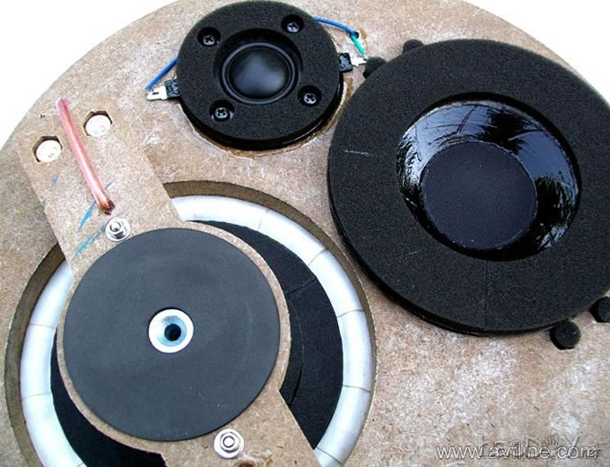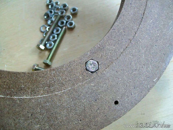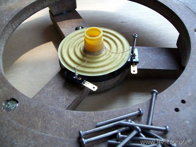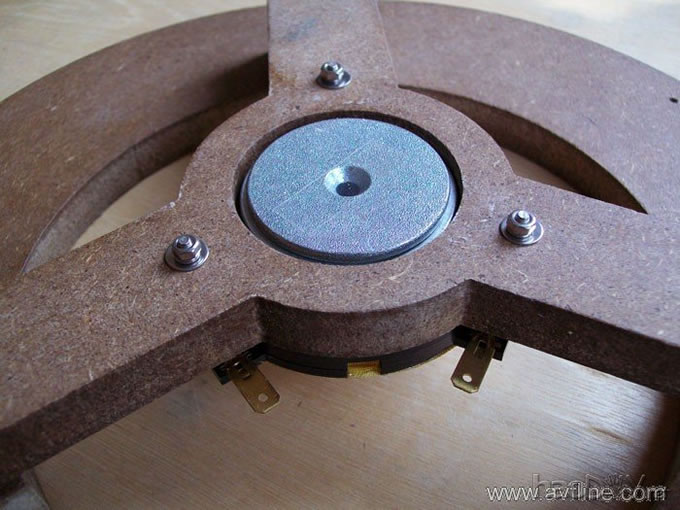 切割盆架,这个喇叭是用中密度板做的盆架,比较另类吧