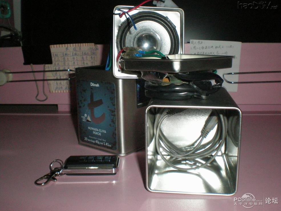 本次主题:非常漂亮"红罐蓝罐"茶叶罐小音箱 功能:带遥控MP3+SD读卡+读U盘+收音机,准备增加音频输入,已焊好插座。 入正题 先上成品让大家流下口水 ![]() =================================== 喇叭正好可以落入茶叶罐的内小盖中, 于是有了把它改为音响的动机。 ![]() 先打几个洞 ![]() 用尖嘴钳把铁皮撕开, 留下用于定位的余量。 ![]() 于是如图, 这样卡住, 喇叭就不会被拉出, 这样就安装牢固了。 ![]() 盖上罐体, 很合适的样子。 ![]() 另一个如法炮制 ![]() ![]() ============================== 喇叭装好了, 就准备装馅了, 内部上12V带遥控MP3。 可收音,可读卡,可放U盘。 ![]() ![]() 功放TDA7266SA, 内部双BTL。 ![]() ![]() 散热片 ![]() 接好个输入插座, 电路还没改好, 如果暂停播放输入, 不一会就待机了。 要动6、7脚分别是待机和静音控制脚。 ![]() 塞入铁罐, 空间刚好。 ![]() ![]() 不听的时候,可以盖上外盖。 ![]() 这样, 我又成为了一个茶叶罐了。 ![]() ![]() 已经增加音频输入,已焊好插座,有空再改电路吧。 大家顶下吧, ![]() ![]() |