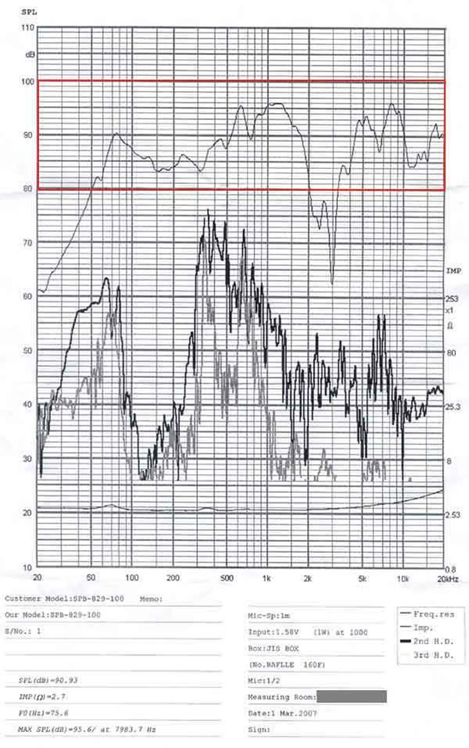测试结果:平均灵敏度90。93 dB,最高:95。6dB
