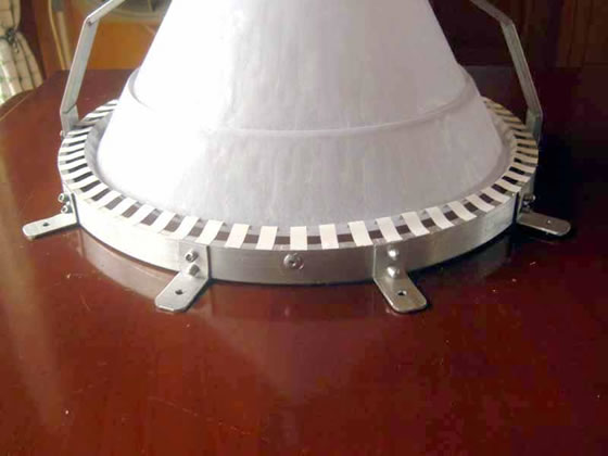 为了使这个喇叭能上障板,我给它加了8个耳朵,每个耳朵还要打孔,最后还要做折边。全部装在一起后还要做折边,就可以上障板了