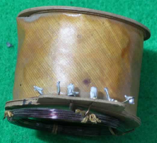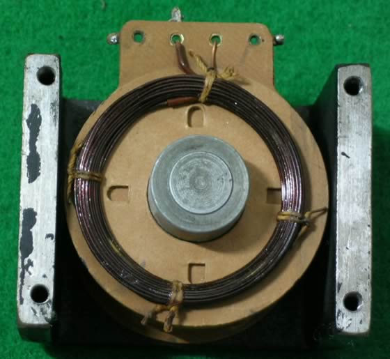 励磁线圈有两个组成一个细线匝数很多的直流电阻1000欧姆左右,另一个励磁线圈线径明显粗,匝数很少,直流电阻0.15欧姆左右,看来和一片海兄的西门子励磁线圈有异曲同工之妙啊。做工还是比较讲究的。音圈直径和德根1262一样。哈哈,大家想到它们的新用途没有没有?用来代替1262红毡或者黑毡的磁铁,是不是很好啊,要是用来代替红乳头的钴磁尤其是40年代的就更好了。也许又一对伟大的喇叭就此诞生