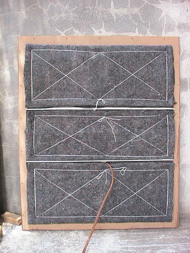 正在苦恼之际转悠到了工具房里,无意间瞄见角落里还堆着一堆买沙发时包装用的那种“毛毡”,拿起来看看,感觉还不错,于是赶紧翻出来裁好叠几层大概有2-3cm厚,半天时间钉完了后背板和箱体内侧。。。。