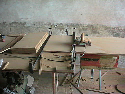 因小弟也算是半个木工DIY爱好者吧,各种工具还算够用,这把盘锯是小弟用手提石材切割机改装成的,配合角铁作靠山开出来的密度板精度相当高,而且切口非常平滑,基本不用刨边就可以开始钉装了