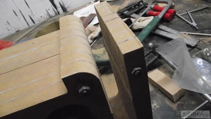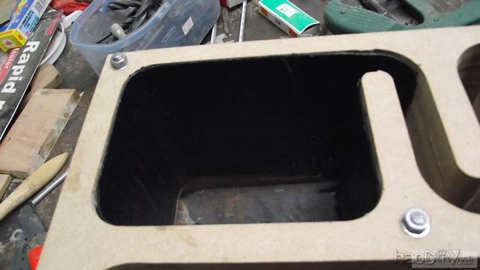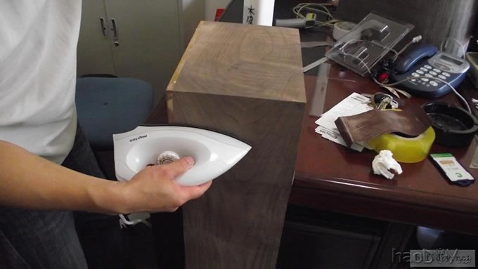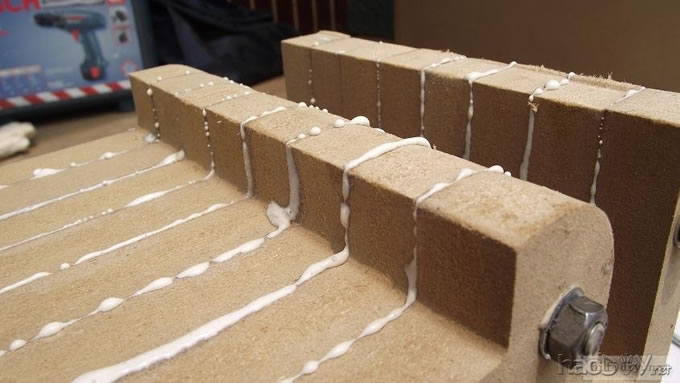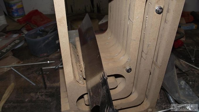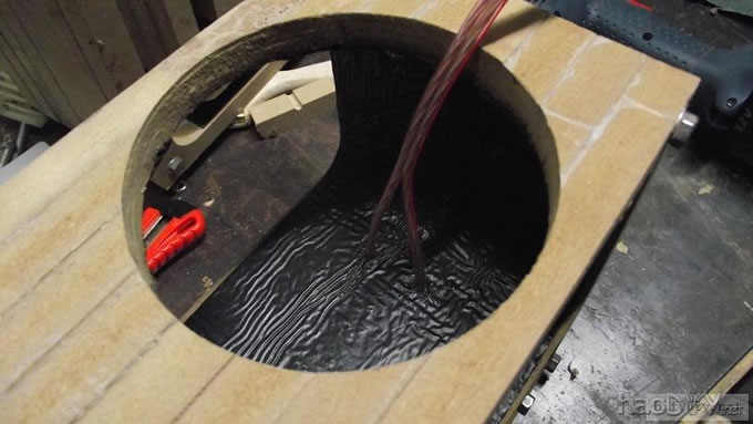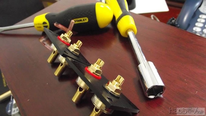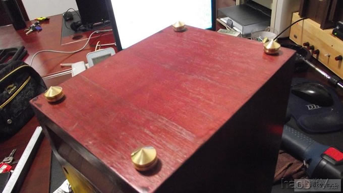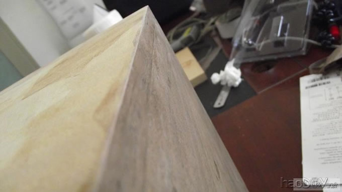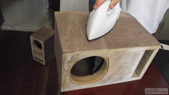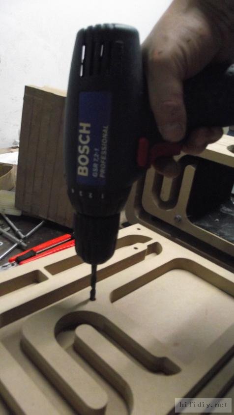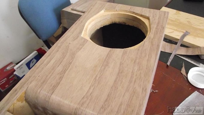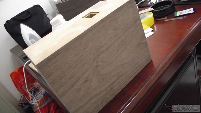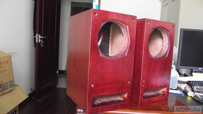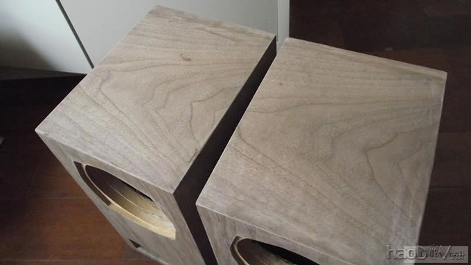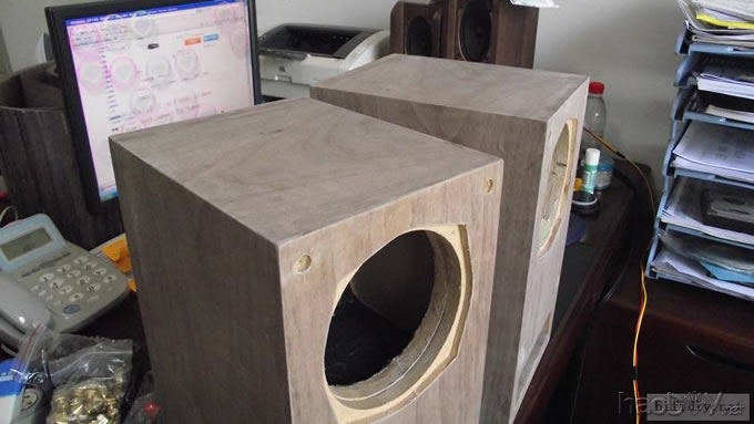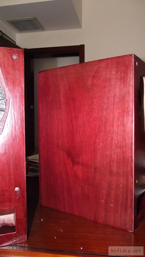 本人的文字功底不行,只能以图说话,希望大家理解,看不明白的地方留言给我,我一定给你答复,你的支持才是的我动力。首先主要是有这样的东西,我才有条件动手的, , ![]() ![]() 准备工作要做好,固定螺丝,乳白胶,刷子等等,上图啦 ![]() ![]() 接下来就是要把每块板子中的加强劲去掉,用钢锯吧,其实也可以先别去掉,等全部粘好后用牙板锯,一下子就可以搞定。 ![]() 然后就是打磨一下哦,也可以粘一起后打磨 ![]() 这个打磨工具是用个结实的东西包上80目砂纸。 ![]() 开始粘胶了,在粘胶的时候,先粘内板,等内板处理好后再粘侧板,一定要注意,同时先搞连个定位螺杆,后面的再穿杆,不要等胶水上好后再穿,那就穿不进了,天气热胶水容易干,而且那么多板很难对齐的。 由于刷子不好搞,后来改了这个,很管用的 上螺丝后的效果 ![]() ![]() 上螺丝的时候,千万别宁的太紧,不然板子会变形的,螺丝的力度太大了 趁着胶水还没有干,先去采购一点配件材料来, ![]() ![]() ![]() 首先这个木皮胶很贵,这么一小瓶就花了我40大洋,木皮直接买了美国黑胡桃的,这个卷材也用了湖北古城的卷材,是自粘的,就像双面胶一样!哈哈 胶水干好后,一般12小时后就干得差不多了,可以打磨了。我采用的是粘好内板后在锯掉加强劲,因为我有牙板锯,这个很方便的。 ![]() ![]() ![]() ![]() ![]() 这个还要打磨的,由于打磨的过程很多的粉尘,不方便拍照,就省了 打磨的很辛苦,大家记得要带口罩的。内部打磨后,内部只要稍微打磨就可以了,只要把胶去掉就可以了,一般都很平整的,开是内部处理了,先按照内部的尺寸量好卷材。 ![]() 直接跟粘双面胶一样,给他粘上, ![]() ![]() 再来看看细节部分 ![]() 用这个压紧一下,增强粘度 接下来就是开孔啦!也是用的是飞机钻,便宜又好调节, ![]() 看看效果吧 ![]() 穿好喇叭线 ![]() 内部布置吸音棉的过程当时没有拍下来,这个过程需要在安装侧板前进行的 安装侧板, 关于侧板的预先处理,用内板做靠山,划上相应的图形,主要用于册固定侧板的螺钉位置,其次是内板凸起的螺母必须给他按个家,盖住他。 ![]() 先定位,再在侧板上打孔,用12的钻花正好,孔的深度在8mm左右 ![]() ![]() 这个用于固定螺丝的开孔位置。 ![]() 侧板安装好了 先看看效果咯 ![]() 下一步就是打磨咯!上原子灰 面板安装,cnc开的沉孔非常的精确, ![]() 为了赶时间,用灯烘烤一下,加快干胶。 ![]() 胶干后,就开始上腻子打磨了,过程就不详细的出图了, ![]() ![]() ![]() 这还需要打磨的, 打磨出来后,就是贴皮了,在贴皮之前还需要做一些准备工作 贴皮需要的工具,主要有熨斗,蒸汽熨斗是不能用的,所以干式的现在比较难买得到,上淘宝,要不就是在买木皮的地方一般都有的卖。 ![]() 熨斗首先把温度控制好,还是采用仪器吧,一般在120-150度的温度最适合。 ![]() 调好后做一个记号。 先在板子上做个小实验,看看胶水的质量如何 ![]() 胶水贵有贵的道理,效果如下 ![]() 下面的板子都撕掉了!哈哈很给力的。 ![]() 准备好木皮,按照尺寸裁剪好 ![]() 上胶水也是一个细致活,我用一个IC卡用来刮胶,上胶水一定要平整。 记住一定要量面上胶水,等胶水干些后,一般2-3分钟就可以粘上去了,再用熨斗来回的烫5-7秒,时间不能停留太久,否者有烫坏木皮的可能。 ![]() ![]() ![]() ![]() ![]() 这个是接起来的效果, ![]() 搞好后就把边稍微打磨一下, ![]() 最后的效果 ![]() ![]() 油漆是我最不满意的地方,由于没有在现场,师傅有点偷工减料,擦底色的时候没有搞好,并非是我想要的颜色。喷漆没有搞好,主要是找的游击队,下次一定要找家具厂搞定, ![]() ![]() ![]() 由于本人照相水平不行,加上相机的质量,没有进行白平衡,导致角度不同,就有颜色的差别,第一张比较接近,箱体的样色,仔细发现还是有点瑕疵的,说明师傅在赶工,并没有仔细打磨 油漆搞好后,接下来就是总装配了, 先搞定网罩扣和脚丁吧! 网扣很容易的,只要定位好,开个12mm的孔用锤子,就可以搞定的 ![]() ![]() 脚丁也是一样的咯 ![]() ![]() ![]() ![]() 这些搞定后,就开始处理音室,由于再装侧板是并没有完全贴上卷材,还是贴上吧 ![]() 这个自粘卷材的粘度非常的好, ![]() ![]() ![]() 这个搞好后就直接把卷材上的一层薄膜撕掉 然后直接粘上吸音棉,非常的方便啊! ![]() ![]() 来张合影 ![]() 接下来就是装上喇叭咯! 喇叭啦,当然是优雅啦! ![]() 这个是喇叭专用密封垫,有点像泡沫胶,但是要比他硬一些 ![]() ![]() 给喇叭来一圈 ![]() ![]() 最后的效果,还没有上专用内六角螺丝的 ![]() 接下来的就是接线柱了,这次我采用了接线板,定制的3mm厚的铝板,非常的漂亮,为什么不直接上在木板上呢?原因是这样的,如果上在木板上的话,接线柱必须在粘好内板后就接上,接线来的打磨,贴皮都要被接线柱所影响,所以呢,就选择用接线盒,由于市面上的接线盒都不理想,所以就自己定制了,呵呵!先上图吧! ![]() 是不是很精致啊 ![]() 自己非常的满意,拉丝后再进行黑氧化处理,具体搞不清楚, ![]() 接上水晶全铜接线柱 ![]() ![]() 顺便炫耀一下自己史丹利的工具哈哈 ![]() 放到箱子上的效果看看 ![]() 再上好内六角螺丝看看看! ![]() ![]() 看看最后的效果 ![]() 这个搞定了,只差网罩了,网罩也很方便的,先把做好的网罩,稍微打磨一下,给他喷一下瓶装喷漆,只要喷黑了就ok了,哈哈 ![]() 接下了就是定位钻孔6mm的用安装网扣, ![]() ![]() ![]() 把网布准备好了,就开始上