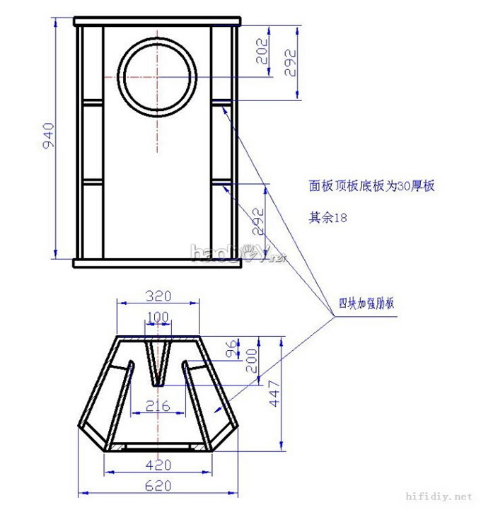喇叭未到,图纸先行! 喇叭还在路上,网上看了些评论,好象做成这个样子比较受欢迎。我买的是3004绝版(收藏版),JS说高低频较宽,本想上障板,怕失望所以还是装箱算了。 图是胆坛的,我重画了下,结构基本了解了,欢迎同好一起做箱,一起交流。 先说我的看法,