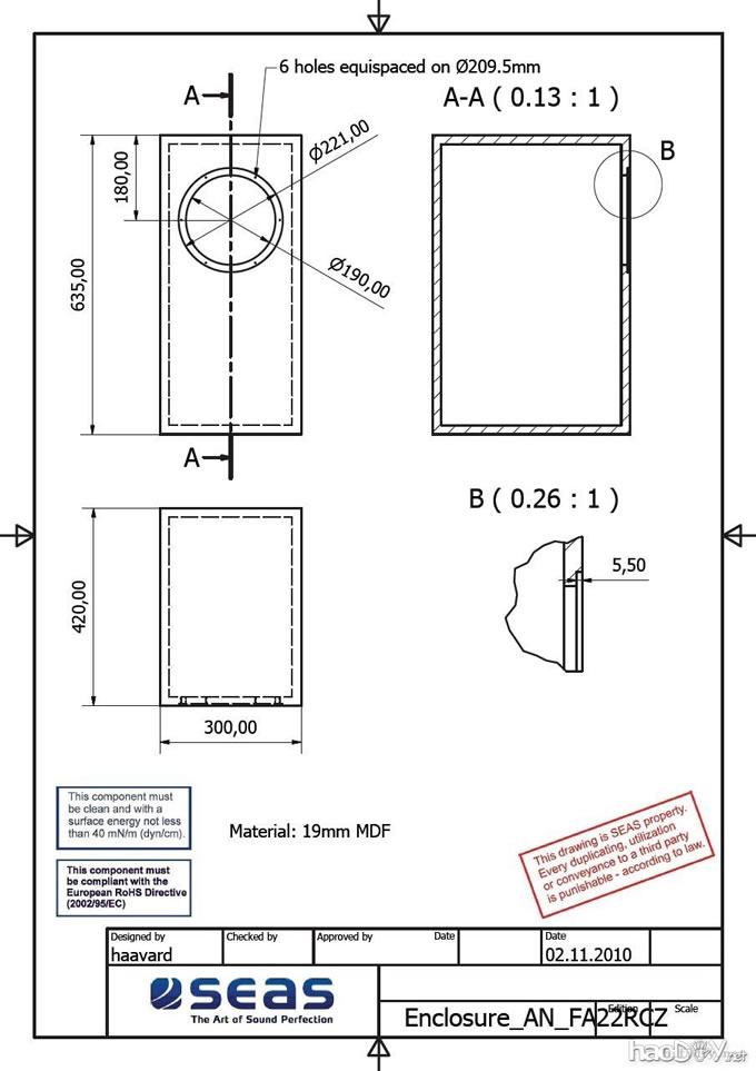 SEAS FA22RCZ H1597-08 西雅士8寸全频喇叭diy制作音箱附图纸