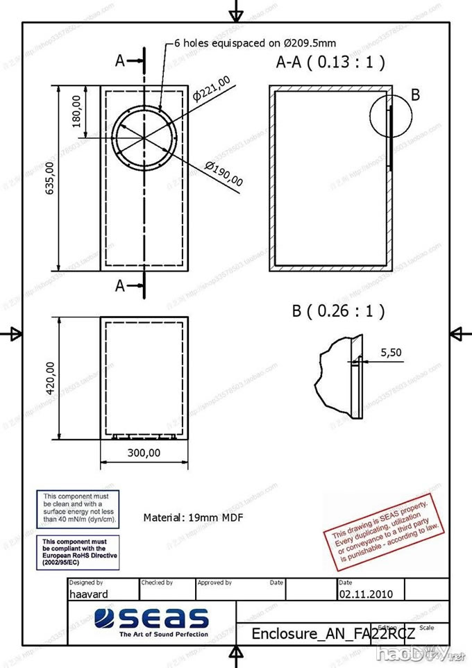 闲着没事又做了一对松下釹磁6寸全频迷宫箱,7合板CNC制作。不说了,上图。 真正的布边...