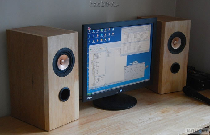 这个音箱是在电脑桌面上用,因此希望占用面积小点。显示器的高度大概400多mm,因此音箱也不要高于这个尺寸。这样看来音箱大概是瘦长苗条型。