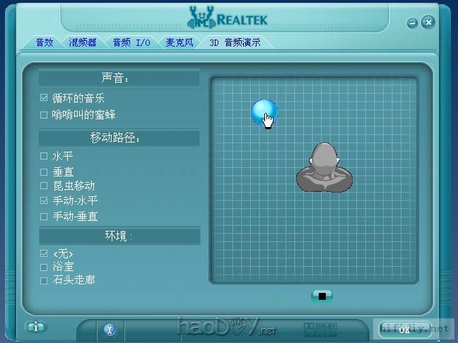 昨天试听的时候发生了一个小插曲,我用这个测试喇叭声相定位的时候,发现分辨不出方位,所有的声音都貌似从显示器中间发出,当时顿觉好失望。难道这个喇叭这么次?