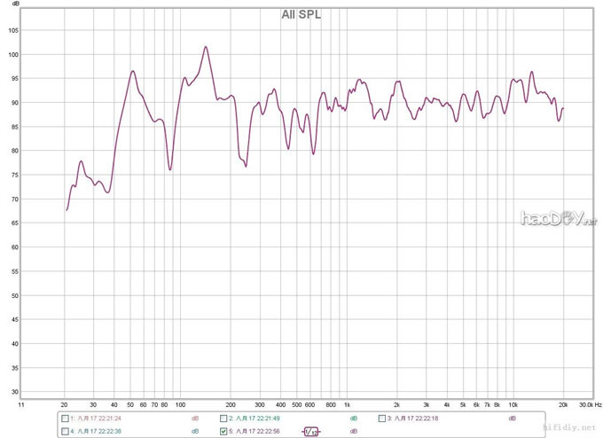 昨天在小房间粗粗测试了一下频响,房间7~8个平方,驻波很严重,所以波形起伏很大,