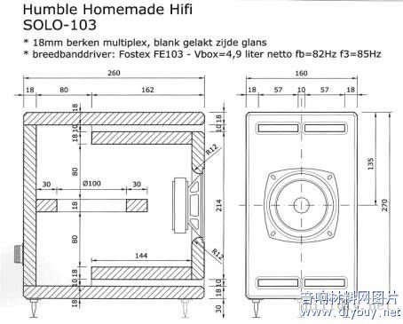 应老朋友要求制作的FOSTEX SOLO-103全频音箱,具体参照如图。