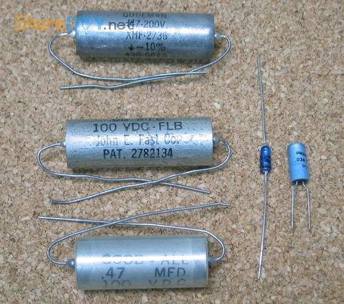 若選用古董油質電容音色就更上一層樓,聲音柔順自然而富音樂感,筆者試用過三疑牌子1.Good-all .47 MFD 100V音色平均樂器前後位置感強,人聲甜美高貴,2.GUDEAN .47 200V聲音潤滑,稍強調少許人聲,中音段略突出,但絕不誇張,最深刻記憶的是聽那EMI錄音的小提琴Nathan Milstein演繹的Bach sonates No.1 in G mimor BWV 1001 第二Tack Fack Fuga (Allegro),這張碟是雙CD,是1955-1966,MONO 錄音獨奏 ”奏鳴曲”,單聲道的錄音竟然有如此通透,音域平衡度甚佳而且定位很準,加上Milstein 的早期演繹風格是大刀闊釜,拉琴亳不留力的「擘」,但更佩服的是恰到好處「激」得來很董得收火,強弱輕重波動很大,絕對容易吸引你全情投入去聽那單小提琴的SOLO,你會講他是為音樂而演繹而不是為表演而表演。GUDEMAN 是好聲的電容,就能吸引到你聽音樂多過「攪」音樂器材。3. JOHN E Fast .68MFD 100V這電容音域特廣,高低音伸延很闊,樂器位置前後感強,很從容不迫的人聲,嬌美艷麗的音色,當我播放著陳潔麗的 CD「心曲」第8 Track的「小村莊」是「雨林」原作歌曲、作曲、詞、編曲都是王巍先生,是大膽的嘗試和勇於特破,溫馨的歌詞加上甜美艷麗聲線的陳潔麗,竟然以明快節奏感的編曲並配上部落民族風格強勁的鼓,Lily「唱」到甚激昂,熱血沸騰而奔放,她仍然收放自如,更難能可貴的是,唱得出村女的少女味,且有泥土農村味又活潑可愛,另方面低沈而強勁的鼓墊托得這「小村莊」穩重而實在,這CD是我試音必備的軟件,但閣下的器材要「夠班」才有這樣“過癮”(或作痛快)。這John E. Fast 電容正是這麼痛快。