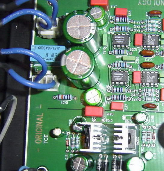 (一):前言 一直以来,原创CD-2008兢兢业业地陪伴着我,与我一起度过了一个又一个有音乐相随的日子。它的优点,我欣赏着;它的缺点,我容忍着。然而是发烧友都会挑剔,终于有一天,我实在无法再容忍下去了,它的缺点在我的心目中,越来越显目。那就是:准备对它来一次不大不小的摩改。说到这里,请容我先讲讲我的系统:原创CD2008+八达小旗舰飘韵3.8H+惠普唯真五号MKII收藏版。大家看到这里,在我的三大件里,CD机的质素最薄弱,确实从表现来看,也确实如此。当然,八达的飘韵3.8H也有不尽如人意的地方,但一想到那句诗:“问渠哪得清如许,惟有源头活水来”, 再考虑到CD2008是我系统里最薄弱的环节,我决定优先对原创CD2008进行一番摩改, 最初的模拟音频信号从CD机出来,如果一开始就不行,失真了。后端功放即使100%高保真,也最多能做到将音源CD机来的模拟音频信号原汁原味地放大,也就是说,还是失真了。我的宗旨是:什么样的马配什么样的鞍,针对CD2008的档次,决定投入100元左右的钱对其进行摩改, 用有限的钱来达到使其音色和表现上一个档次的目的,重点突出投入产出比。 以下是摩改前的电路图。 (二):我对原创CD-2008的客观评价 说了这么多,现在来具体说说,我来对CD2008做一个综合客观的评价:优点是:外观靓且时尚,整体音色中性略偏温暖,也比较耐听。缺点是:极高与极低频延伸不够,另声音较直白,对音乐而言,缺乏一种感染力。同时,声音略带颗粒感,不够细腻。还有一个缺点就是信噪比需要进一步提高,在将CD机处于暂停,功放音量旋钮旋到最大时,几米开外,就能听到可闻的高频噪声。缺点说了不少,优点没怎么说,大家别怪我,也许是我比较挑剔吧。综合评价:在这个2000来元的价位上,从声音表现来看,值这个价钱,但说不上超值。 (三) 原创CD2008电路的初步分析 该机模拟部分和数字部分共采用两个环形变压器。并置于机内左上角封闭的铁盒内。其电压绕组及功能如下: 数字部分电源: 1.棕棕(3V, 0.1A),给LCD供电。 2.橙橙(21V, 0.2A),给LCD提供负压。 3.黄黄(8V, 1A),经LM7805稳压,给TDA7073饲服电路等供电。同时引出另一分支,经LM317调压成3.3伏给SAA7327供电。 4.蓝蓝(8V, 2A),经LM317调压,输出+5V给PCM1732U供电。 模拟部分电源:蓝黑蓝(15V+15V, 1A),给AD827和OPA2604供电。 其中DA转换由带HDCD解码的96KHz/24bit PCM1732U解码芯片来实现。AD827实现I/V 转换及二阶巴特沃斯低通滤波器,BB公司的OPA2604实现电压缓冲放大。 (四) 原创CD-2008电路设计的一个缺陷及改良措施 大家只要仔细看一下它的电路,或者直接从图中也可以看出. 其双15V交流输入经桥式整流后, 然后用了一个220uF的电解电容滤波, 看到这里, 大家有可能会说我少写一个零, 事实它就是用的220uF, 25V电解电容滤波的. 然后再送到LM317/LM337调压并稳压, 输出双12.5V给OPA2604及AD827双运放供电. 然而本末倒置的是: 在OPA2604及AD827的退耦电容却用了一个6800uF, 16V的大电容. 这样本末倒置的做法后果是: 首先送入LM317/LM337的电压存在较大的纹波, 同时退耦电容过大, 虽然有一个保护二级管, 但是关机时6800uF储存的电压还是容易倒灌, 有可能会影响LM317/LM337. 针对该缺陷, 我的改良方案是: 将二个220uF的电容改为6800uF的ELNA 高速补品电解, 并提高其耐压到35V. 这样还有助于降低其漏电流,散逸因数及ESR值. 它们的两边再各并上一枚0.1uF的ERO MKP电容, 这两个电容还同时做为LM317/LM337的输入电容, 可以使其工作更稳定. 两个6800uF的退耦电容改为680uF, 耐压选为25V, 也在它们的两边各并上一枚0.1uF的ERO MKP电容. 做为LM317/LM337的输出电容, 也用两枚0.1uF ERO MKP电容,作用同其输入电容. 现在正用XX的8片TDA1453并联的解码器对比试听。2008的声场要宽广,并且要比1543均衡。1543在某些频段似乎过于突出,解析力也不够,有点朦胧的感觉。在反复对比《机遇》3的时候,2008给人的感觉是蔡琴在你面前静静的诉说,1543感觉是她在你面前倾诉。也许这就是大家说的2008感染力不够把。但综合起来,还是2008更耐听,听起来是一种清澈透明的声音。下一步各种器件到位后在开始动手摩机,在电源方面不打算有太大的动作,毕竟里面空间太小,放不下我的洼田式电源,另外本身2008的电源也不错,估计改善有限。重点将放在运放和电容的比较,现在手上有AD827AQ,OPA627,看看怎么组合比较好。电容也有7,8个牌子的,慢慢的试吧。 但是运放、电容等的选择大家仅仅是参考就好了,每个人的系统、爱好不一样,合适我的系统,不一定就合您的口味。但是在基本的电路完善、降噪这些方面,如果有条件大家都可以做一下。特别是大家一致恶评的噪音问题,如果能解决,最好不过了。 还没能仔细研究到底噪音问题出在哪方面,照常里来说不因该那么大的。说不定接地设计有问题。 (五) 调整运放的工作电压 在CD2008的电路里, 交流双15V经整流, 滤波送到LM317/LM337调压并稳压, 输出双12.5V给OPA2604及AD827双运放供电. 但实际上, OPA2604和AD827的最佳工作电压为+/-15V. 这一点, 改动起来不是特别复杂, 只需要将LM317/LM337调压的两颗1.8K的电阻改为2.2K即可. 这样做的好处是, 改善了电路的动态范围, 同时还降低了失真. 但是要注意的是, 由于提高了工作电压, 需要注意退耦电容的耐压是否符合要求, 原来退耦的6800uF,16V电容建议改为至少耐压25V的电容, 我是将其改为680uF, 其他具体改动见以上的文章内容. 昨天终于把电路板拆下来研究(怕损