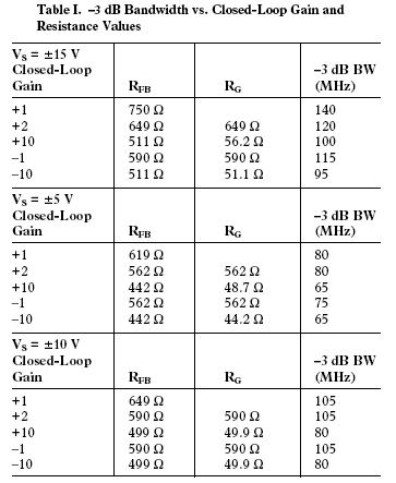 CFB频带很宽,这是容易自激的原因之一。它对布线要求严格,反馈网络各电阻的取值也不是任意的。Ad811有一个反馈电阻推荐取值表格,兼顾了稳定性和带宽,根据它设定关键部位的电阻值基本没有大问题。我们是音频应用,用不了太高带宽,因此取值尽量往大了取。
