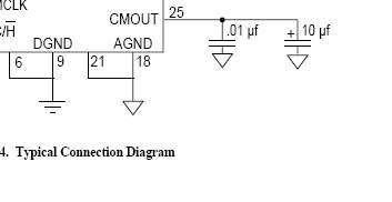 可以看到:这个脚同DAC的模拟输出放大器的偏置相关,它的电位就等于四个差动脚的静态电位。