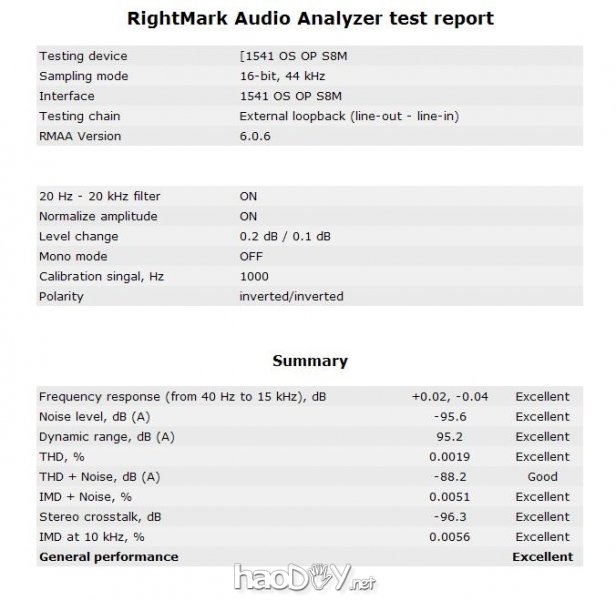 此部分当是参考用。RMAA 16/44.1K测试结果。