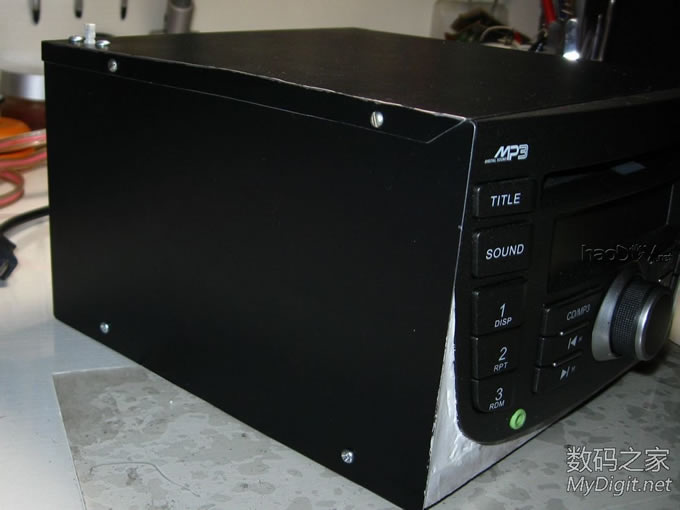 陆陆续续买了不少车机,总想好好的改几台,但时间有限。这次拿一台老早入手的异形面板的老款凯越CD机试手,看看改造的思路是否对,为以后的车机改造积累经验。 本次改造的重点在异形面板的修饰和车机外壳的改制,电路改造不是重点,功能开发也不是重点。 上图了,图片说明在图片下方。 ![]() 这就是老凯越CD机,新版的已经在面板上设计了AUX输入但取消了USB,USB和AUX哪个更实用,仁者见仁,如果两者都有就更好了。第一张图就糊了,老恶心了。咋整?借几张网上的图吧,如涉及到版权问题,请原作者提醒,我立马删图。 ![]() 这张图就是借汽车之家的。虽然是异形面板,但还说得过去,较为好改。 ![]() 先来一张改造后的成品图,算是剧透吧 ![]() 之所以选择这款先来,歌乐机芯也是重要因素,但是,这款哥乐芯也是简配版了。 ![]() 底视图,这张是借汽车之家的 ![]() 后视图,这张是借汽车之家的。 改造用时比较长,期间相机存储卡坏过,丢了不少照片,也懒得重新来过,借图就是懒的最有力佐证。 ![]() 首先用水口钳处理到红圈内的三个加强筋,剪平就行。面板用料不错,硬度和韧度都好。 ![]() 然后拆开面板,观察能否进行切割。这是面板的电路板,如果要切割面板,红圈内的部分不可避免的要同步切割。观察发现,是可以切割的。 ![]() 这里的宽度足够了,切割没问题 ![]() 注意红圈内的USB外壳接地焊点,这个焊点不打开,电路板无法取下。 ![]() 再观察面板电路板的这一面,红圈内的部分都可以适量切割。 切割电路板要小心,最好用毛巾遮盖好其他部位,防止碎屑跑的到处是,尤其是铜箔的碎屑很可怕。更要防止因切割力道过大造成其他部位布线损坏。 ![]() 上部红圈内是按钮的印刷电路,每个按钮都有两个触点,切掉一个不影响使用。话说最烦这种印刷碳膜电路,与之配套的是导电橡胶按钮,这种设计是遥控器常用的,动不动就失效,酒精擦洗一下又好用了。也有车机是使用金属弹片微动的,更可靠。 下面红圈内的开口是前置USB小板的安装位置。 ![]() 根据电路板的可切割余量,计算好面板的切割量,宁可少切不能切过了。 ![]() 注意这里,面板的下边也要切割一条,尽量降低面板的高度。 ![]() 这是切割后的面板,苗条秀气了不少,更趋于方正外观,外壳改造更方便了。 要占好多楼,各位见谅。 接楼上。 ![]() 这是切割后打磨好的样子。 ![]() 另一侧。原来的卡扣都在,切割不影响结构强度。 ![]() 放入导光板,切割量刚好。 ![]() 看看电路板需要切割多少。 ![]() ![]() ![]() 电路板切割好了。切割后一定要打磨切口边缘,这个不能偷懒。 ![]() 复装,测试,功能完好无误。 ![]() 现在对面板的金属背板进行切割,这个比较麻烦,钢板好厚啊。 ![]() 切割钢板的下边,这两个卡隼就且掉了,但总体上不影响面板的安装,强度足够了。 ![]() 这是切割好的背板,切口边缘都做了打磨。 ![]() 再次复装。 ![]() 看吧,切面板其实很麻烦的,面板、电路板、背板都需要切割,尺寸还得把握好。 ![]() 切割后,侧面的样子 ![]() 接楼上。 ![]() 从这个角度再看看底边。 红圈内的是前置USB接口,下面就要改造它了。 ![]() 前置USB接口是MINI的,得改。 ![]() 前置USB小板的位置,要拆掉。 这图是最开始拍的。 ![]() 拆掉前置USB小板后,这里的空位足够安装标准的USB母口了。 ![]() 这是主机上的USB输出插座,丝印很清楚。 ![]() 找来一条USB延长线,取母口。这条线的质量还是不错的,拆了感觉可惜。 ![]() 这是USB前置接口的插头,这一端插在前置USB小板上。本来想剪掉这个插头如上图的USB母口焊接的,但用电容的铜脚做了几个插针插上试试,粗细刚好。这样,就不必剪掉这个插头了。 ![]() 直接把电容的引脚焊接到USB母座的线上,排好线序,用热熔胶和热缩管固定,一个USB转接延长线就做好了鸟啊! ![]() 把做好的USB母口放到规划的位置上试试,刚好。 ![]() 原来的USB插座外壳有接地,自制的USB前置接口也做个接地。 #p#分页标题#e# ![]() 这是面板上的USB 小板,螺丝固定的,很坚固,但也得换掉。 ![]() 扩孔,去掉防尘塞。 ![]() 标准USB前置接口改造成功。 ![]() 看看机芯。下面开始改造前置AUX了。 ![]() 这是主机板,据大能说,这是缩水版的哥乐芯了,更老版本的比这个好很多。 接楼上。 ![]() 这里是前置AUX接入点。其实就是断开了收音机到音效的输出,强行插入AUX信号。改造方案很多,我选择了最简便的方案,就是在这里接一个3.5的音频插座,插入AUX输入插头,直接断开收音机变为AUX输入,拔出插头就是收音机输入。具体改造方法,请参考汽车之家大能的帖子http://club.autohome.com.cn/bbs/thread-c-875-16602185-1.html,非常详细,这不是我的改造重点,不在赘述。 ![]() 找一条光驱的音频屏蔽线,作为AUX输入线。 ![]() 很简单,去掉那两个0欧电阻,接入线即可。篮圈一端是收音机输出,红圈一端就是AUX输入端。 ![]() 用双面胶固定好线,做好绝缘。 ![]() 复装,AUX线从后部引出,当时考虑从后面绕到前面去,在面板上改AUX输入插座,但后来还是重新布线,直接布线到前面板。 ![]() 安装好散热片。话说这车机发热不大,原来想加风扇的,后来取消。 ![]() 复装后,这是前置USB的接线。 ![]() 这里的两个侧面固定片钻孔,以便安装固定螺丝 ![]() 红色热缩管的出口是后钻的孔,从这里把AUX线直接引出,不必再从后部绕到前面。 ![]() AUX线从这里直接引出到面板。 ![]() 这个3.5的音频插座是从某主板上拆得的,