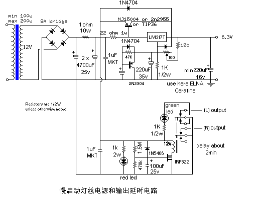 图6是一个“廉价”的版本,用图7所示的慢启动灯丝电路,并提供延时。